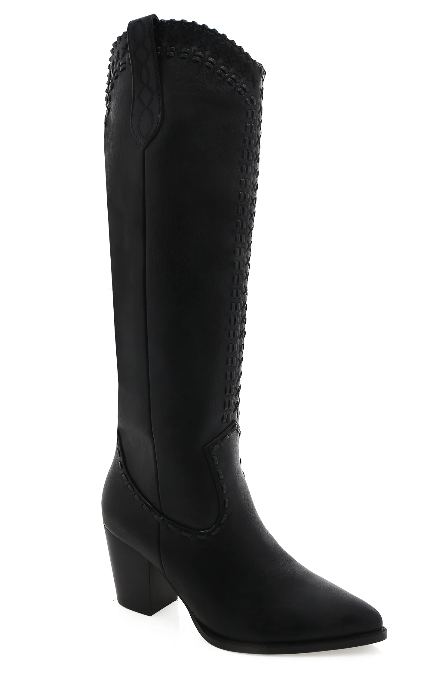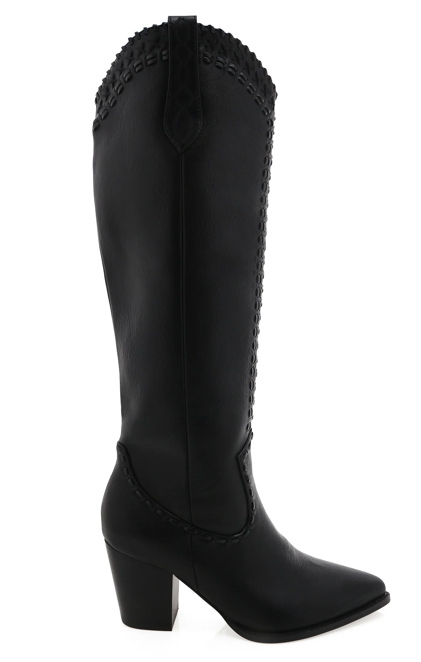 A classic western-inspired boot designed for events and festivals, featuring a long length and suitable for outdoor activities.