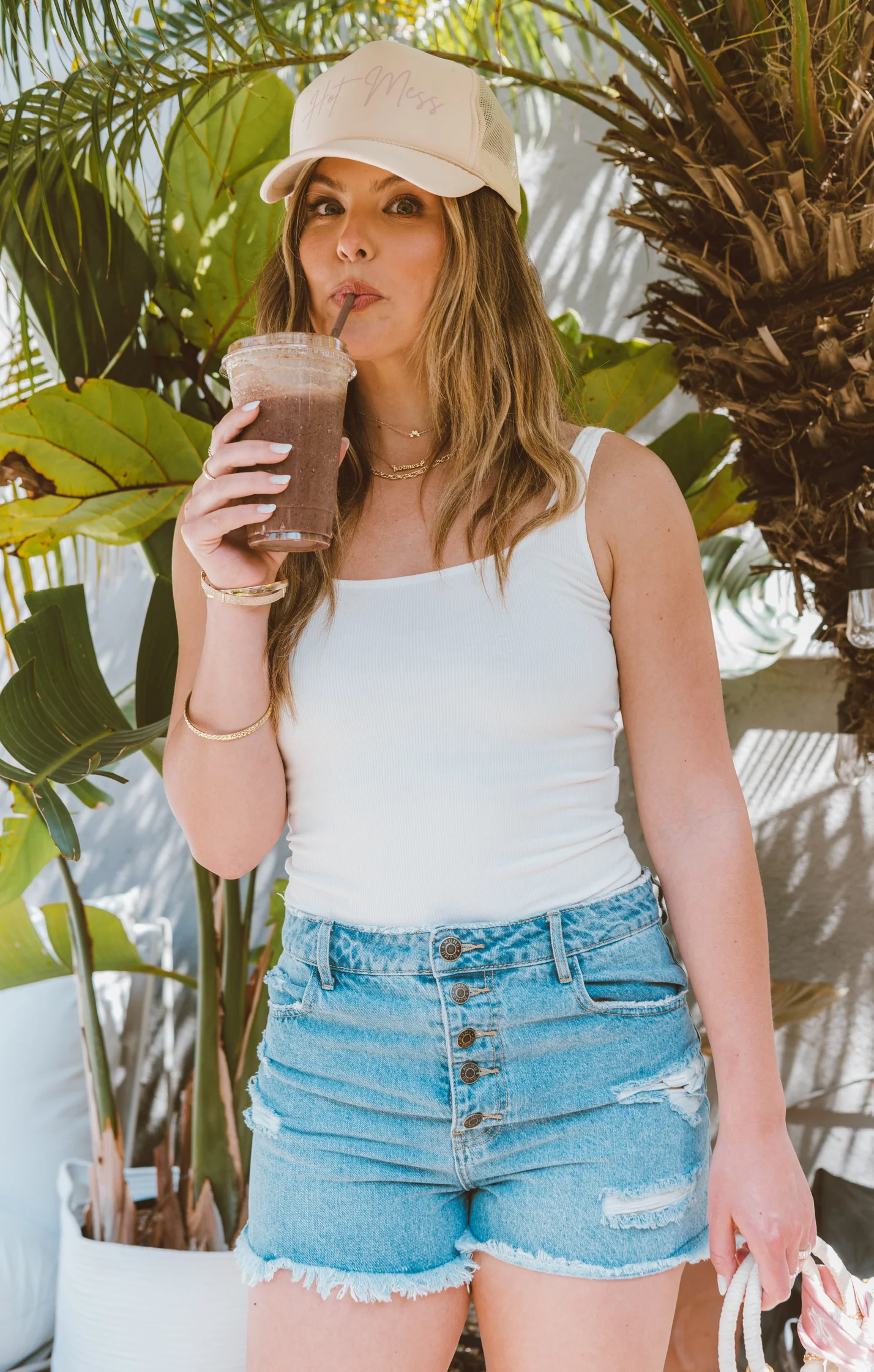 A cute, versatile and fun trucker hat designed by Mumu for Mumu girls. It's perfect for wearing while getting coffee or sleeping in romper, capturing the essence of a hot mess lifestyle. The hat is comfortable and custom-made to fit the style of Hannah Brown.