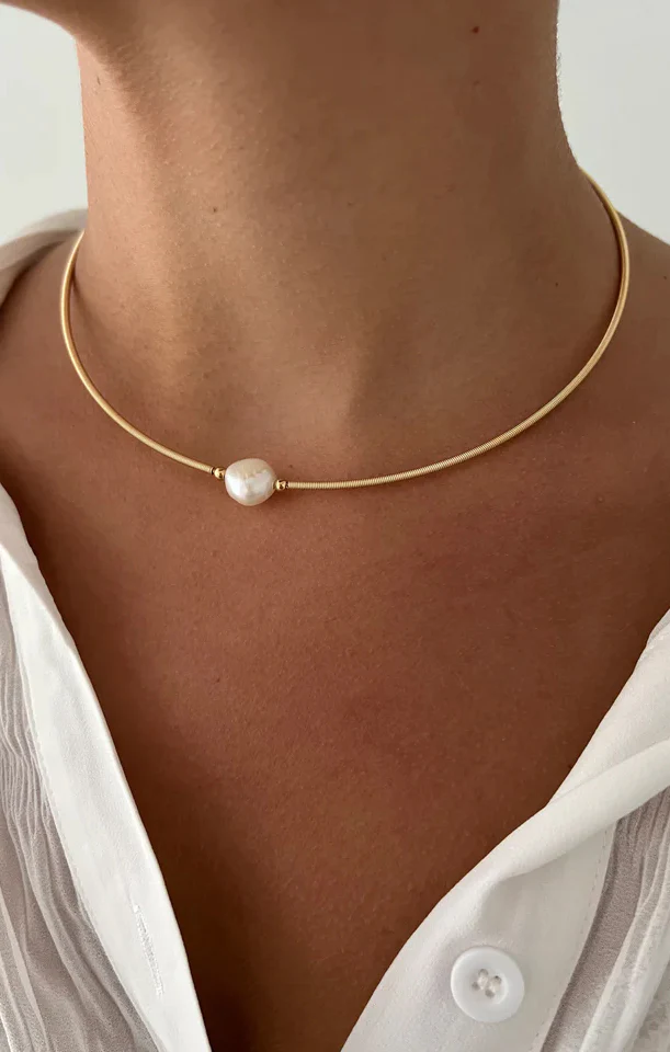 A reversible pearl choker featuring a beautiful set of pearls.