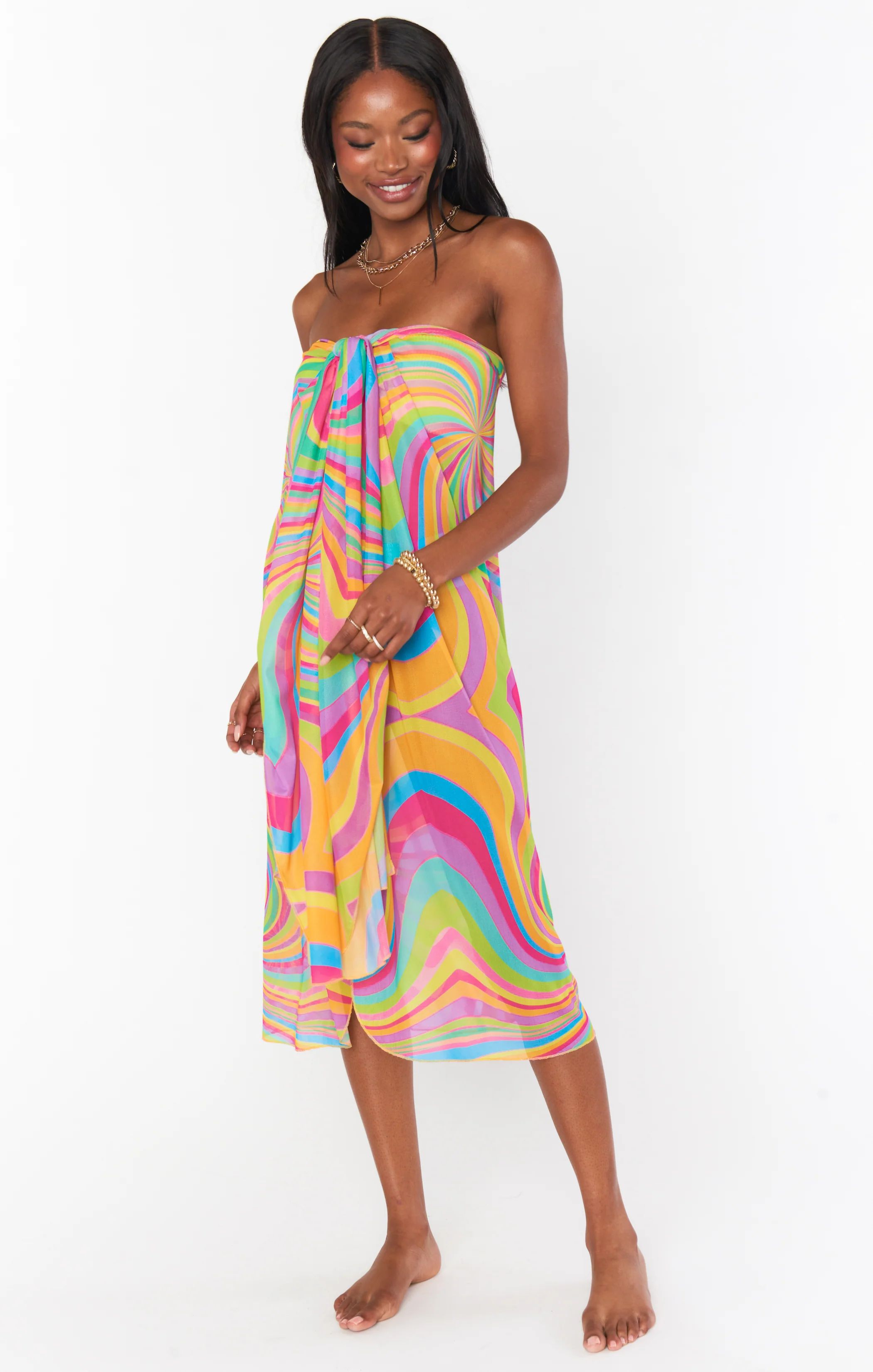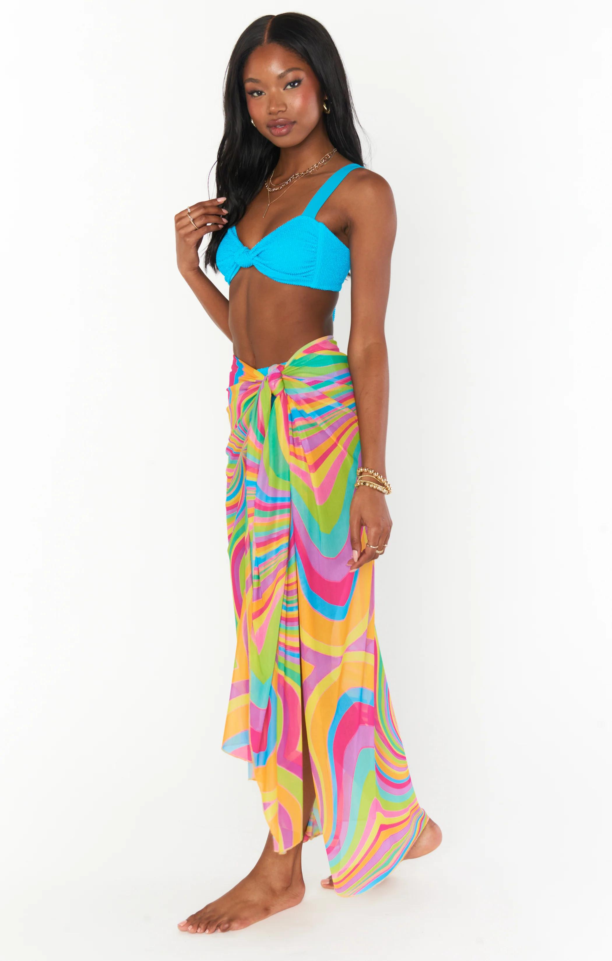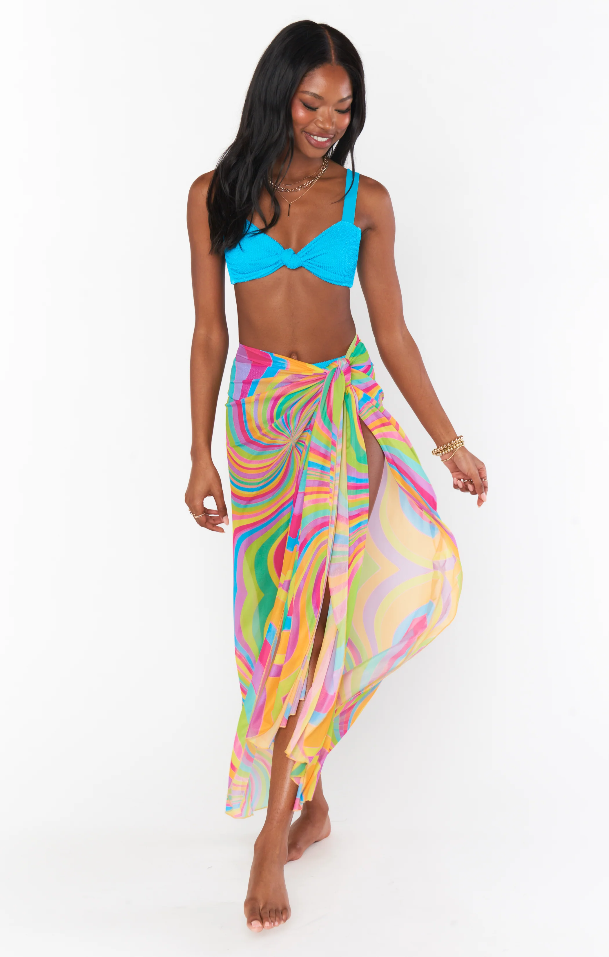 A versatile, stylish sarong designed to add a touch of tropical charm. It can be styled in multiple ways—worn over shoulders, tied around the waist, or wrapped like a bow for a sweet strapless moment. Perfectly complements your Mumu swim style.