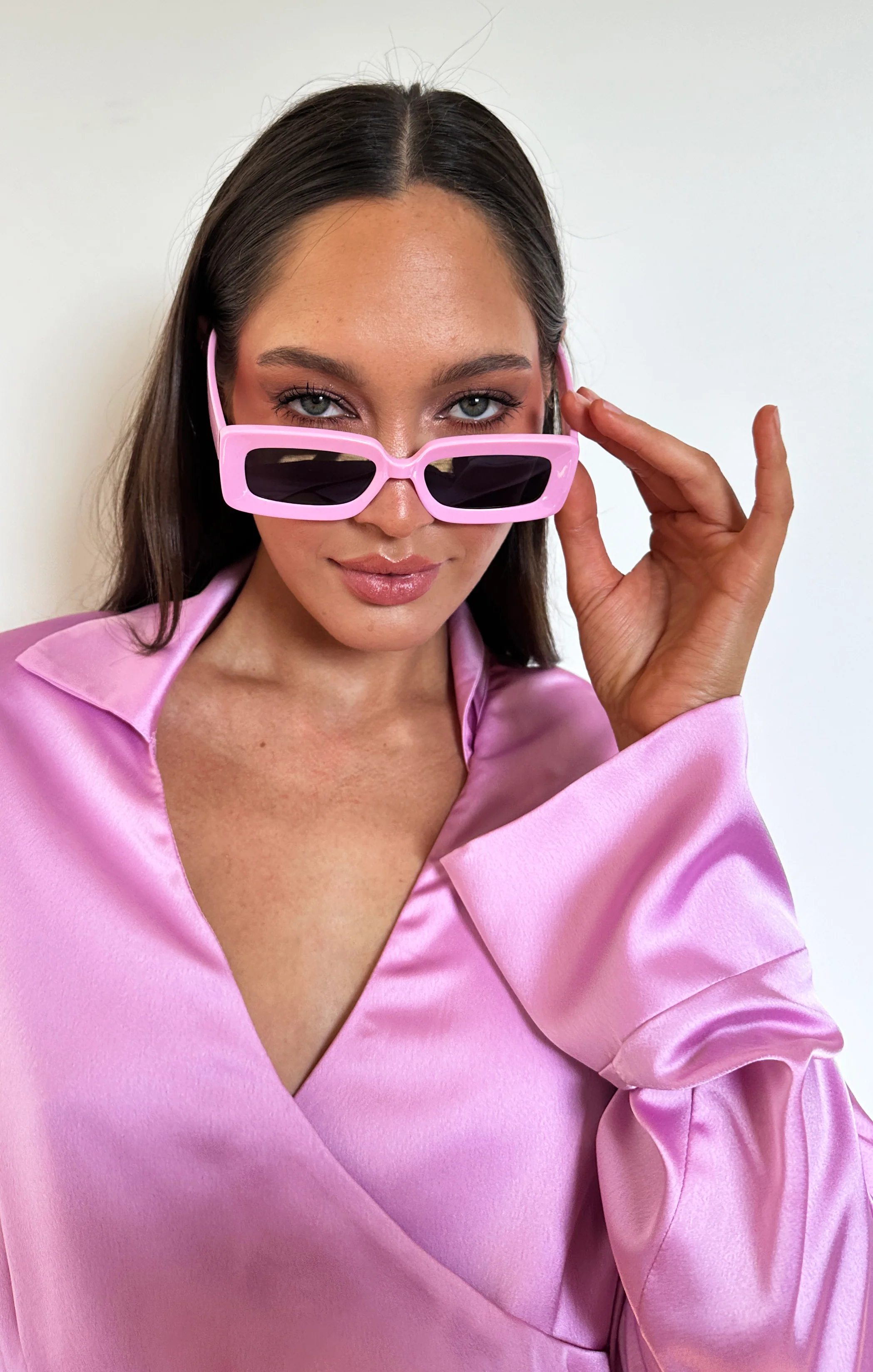 A fun and trendy pink sunglasses that complements your outfit.