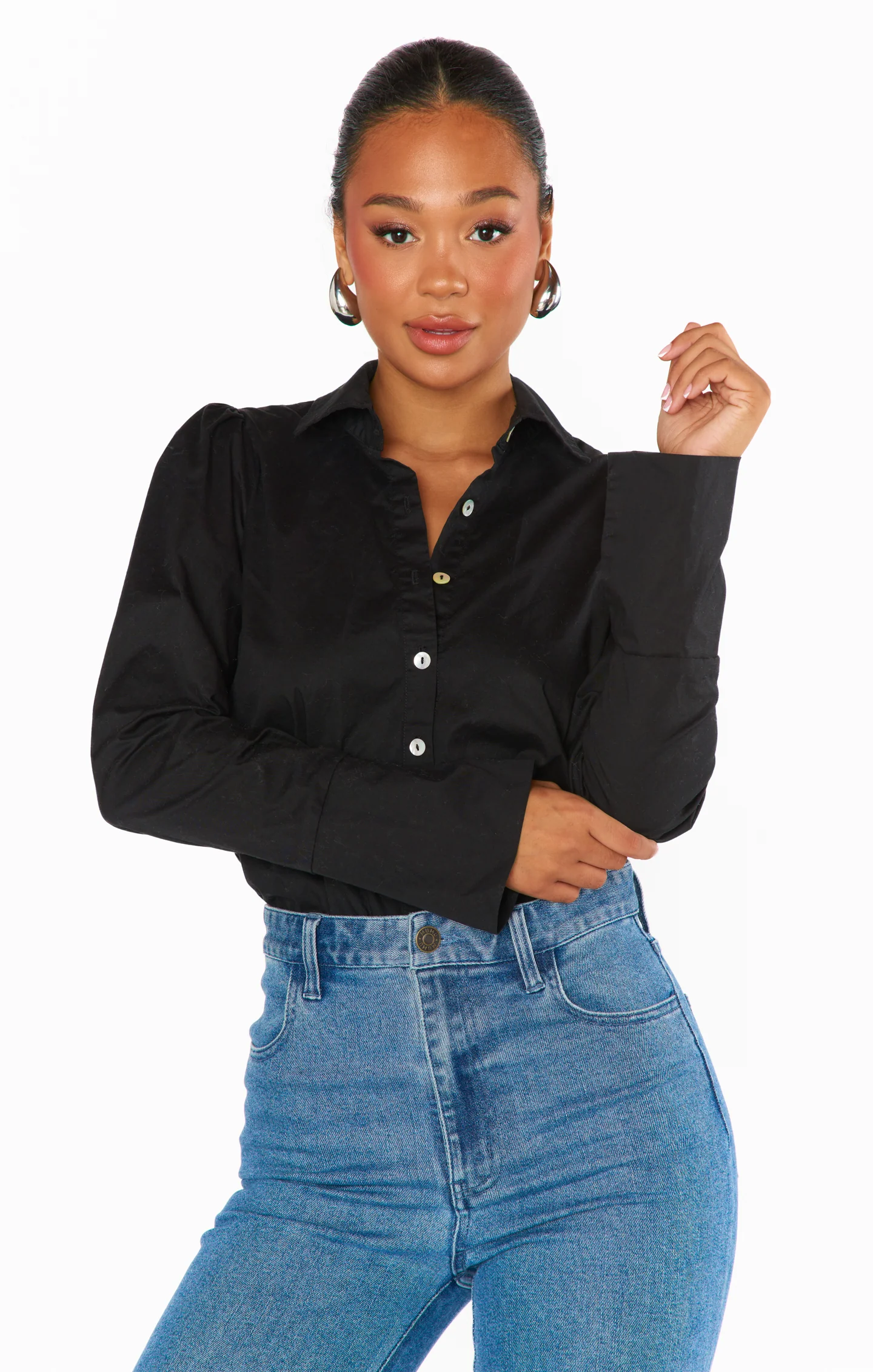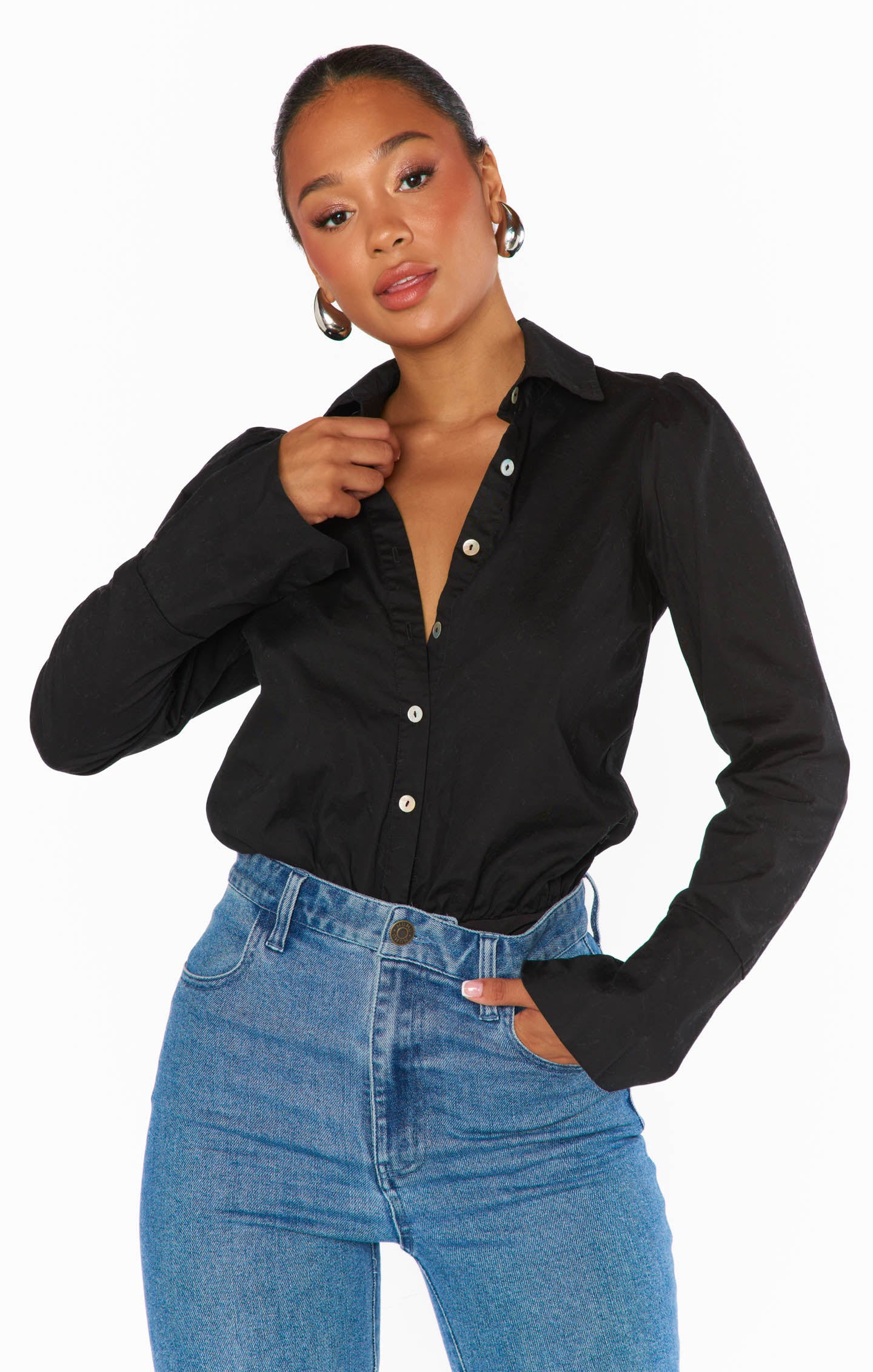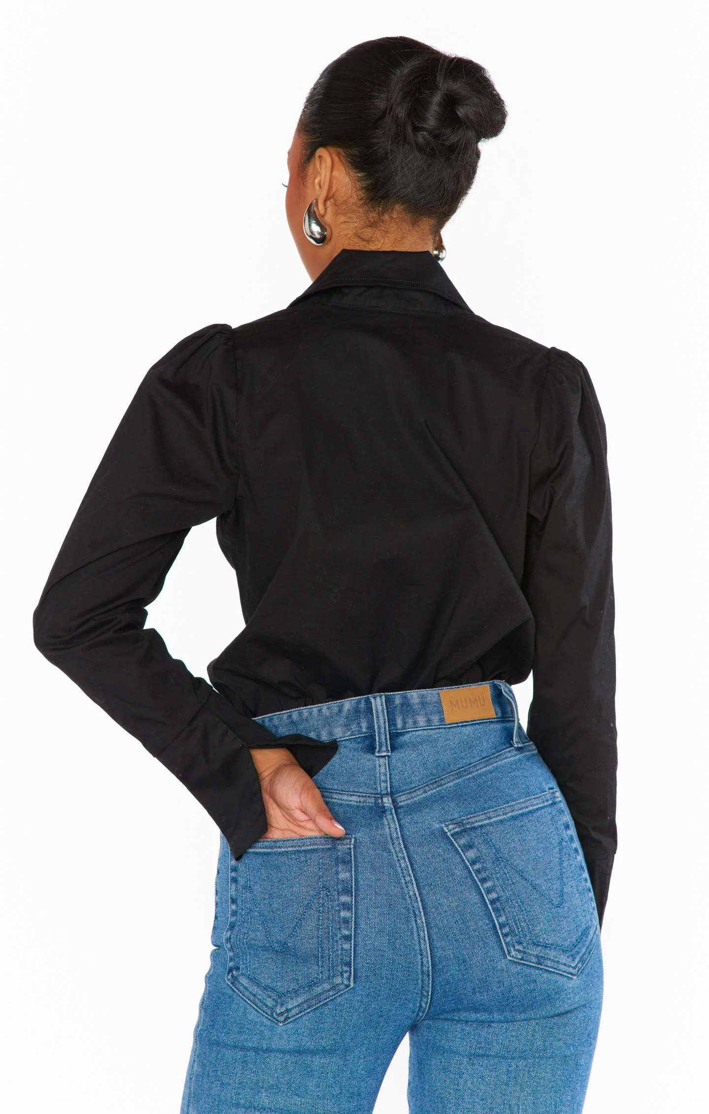 DetailA stylish bodysuit that offers the illusion of a perfect tuck, styled with your favorite Mumu denim or sleek trousers.