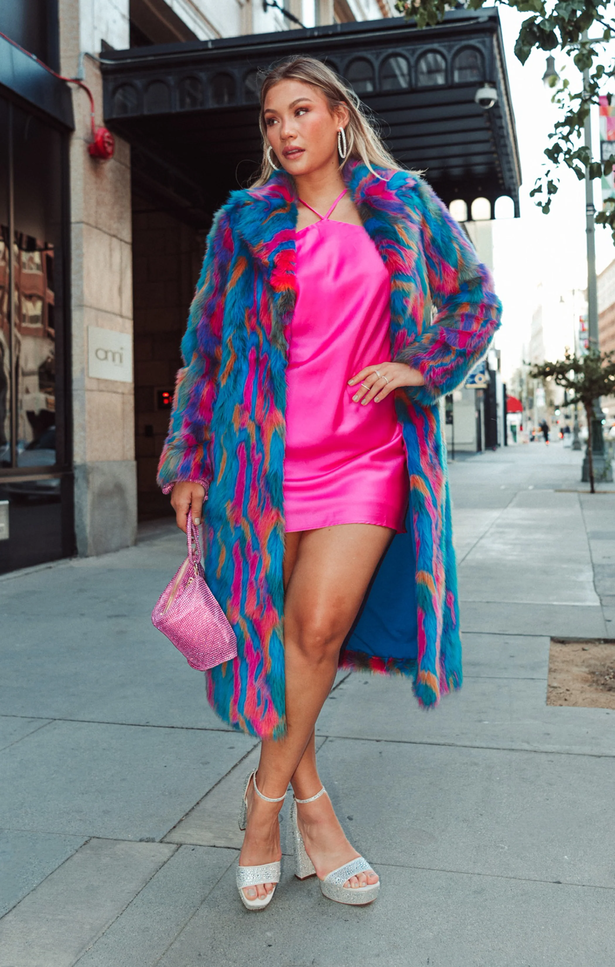 Penny Lane Long Coat ~ Faux Suede Chevron with Faux Fur