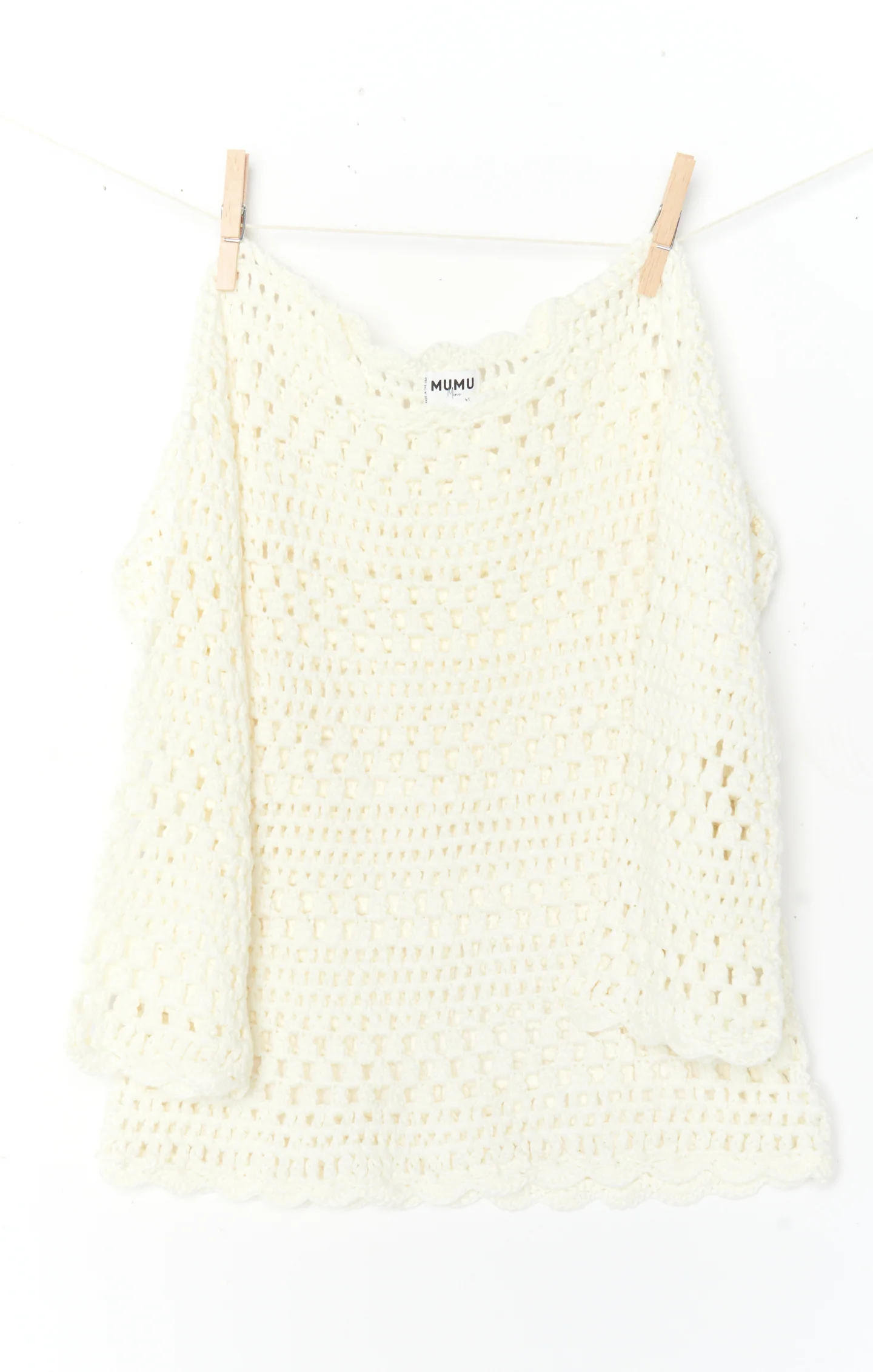 DetailA cute white crochet pullover with a big style, featuring the fun and playful look of the original Paula Pullover, perfect for small babies.