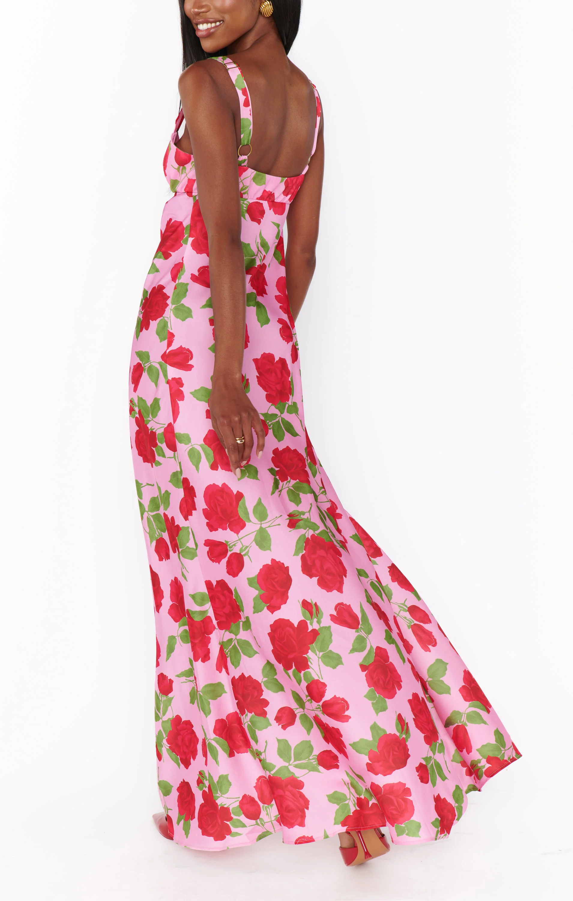 A romantic and flirty dress with a sweetheart neckline, adjustable straps, and a high leg slit. Perfect for date nights or special events, leaving everyone in awe.