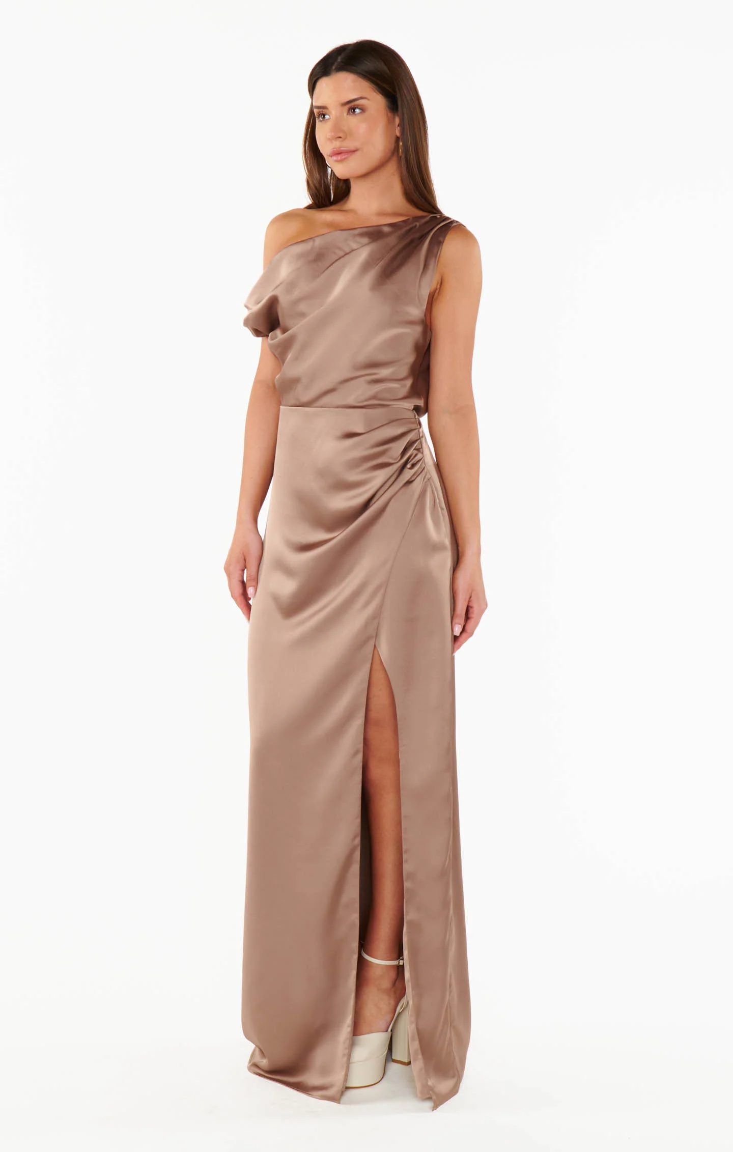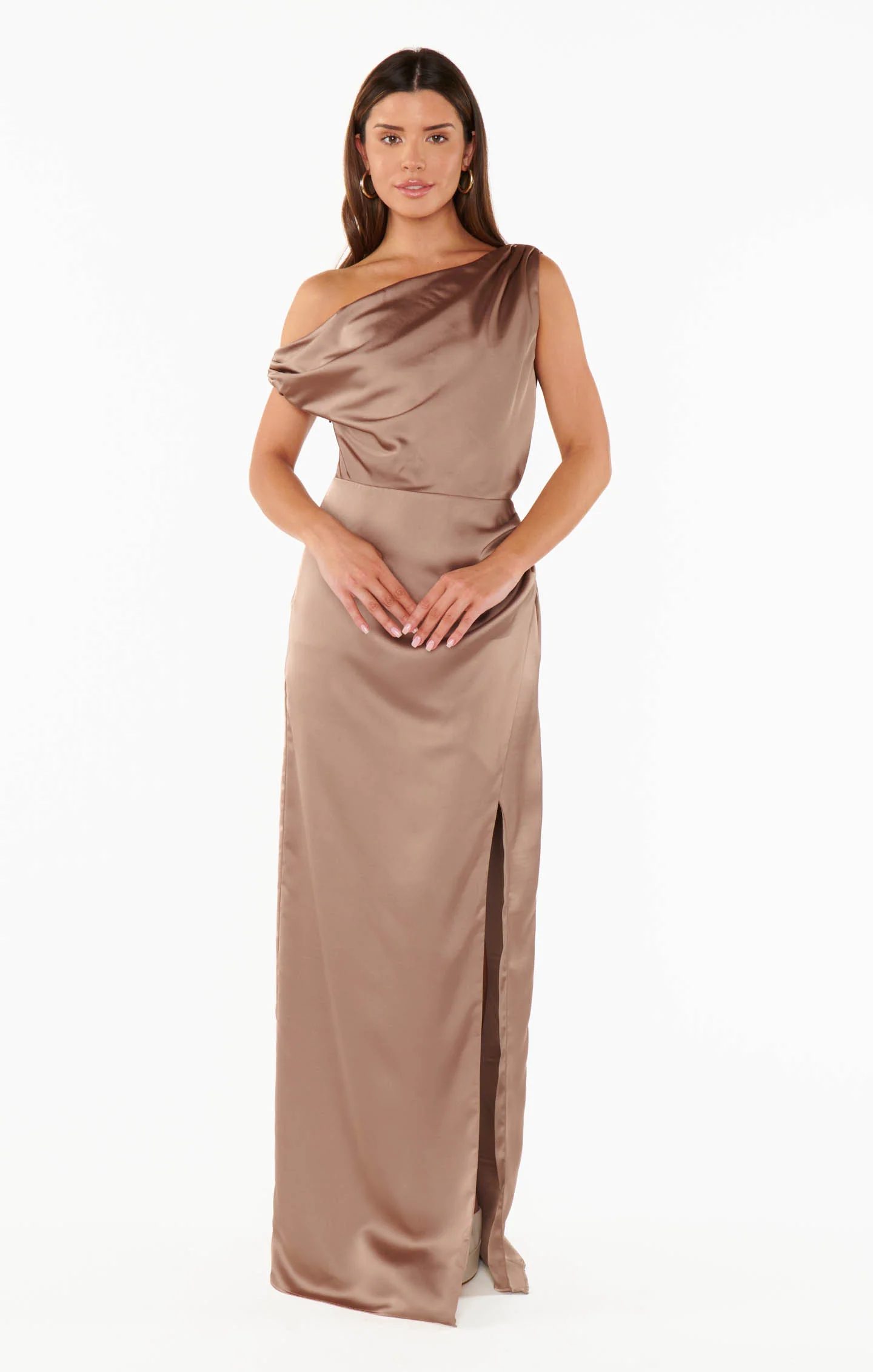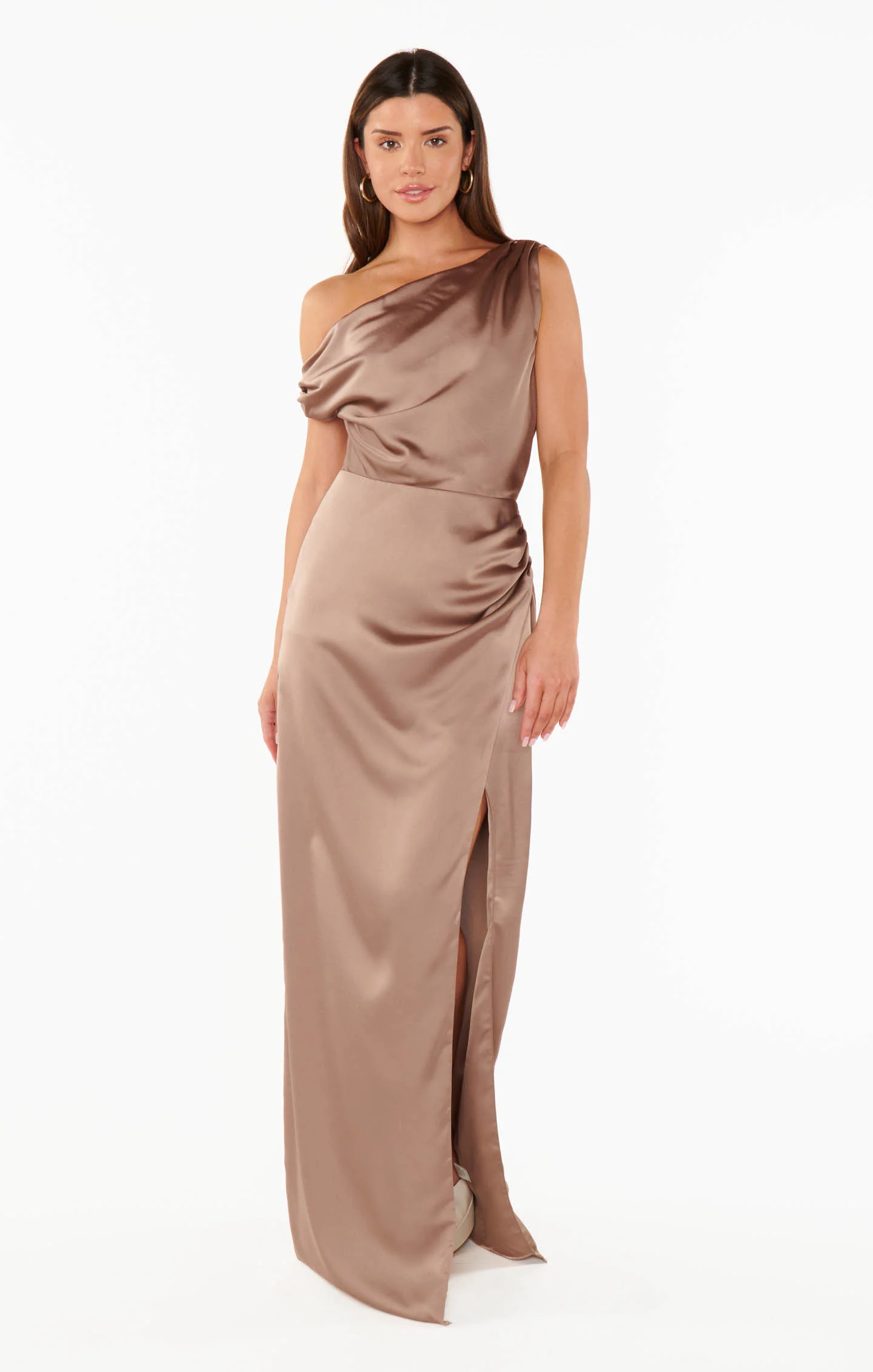 Home / mumu-weddings-best-selling-bridesmaids / "name": "Jodie Dress ~ Dune Luxe Satin