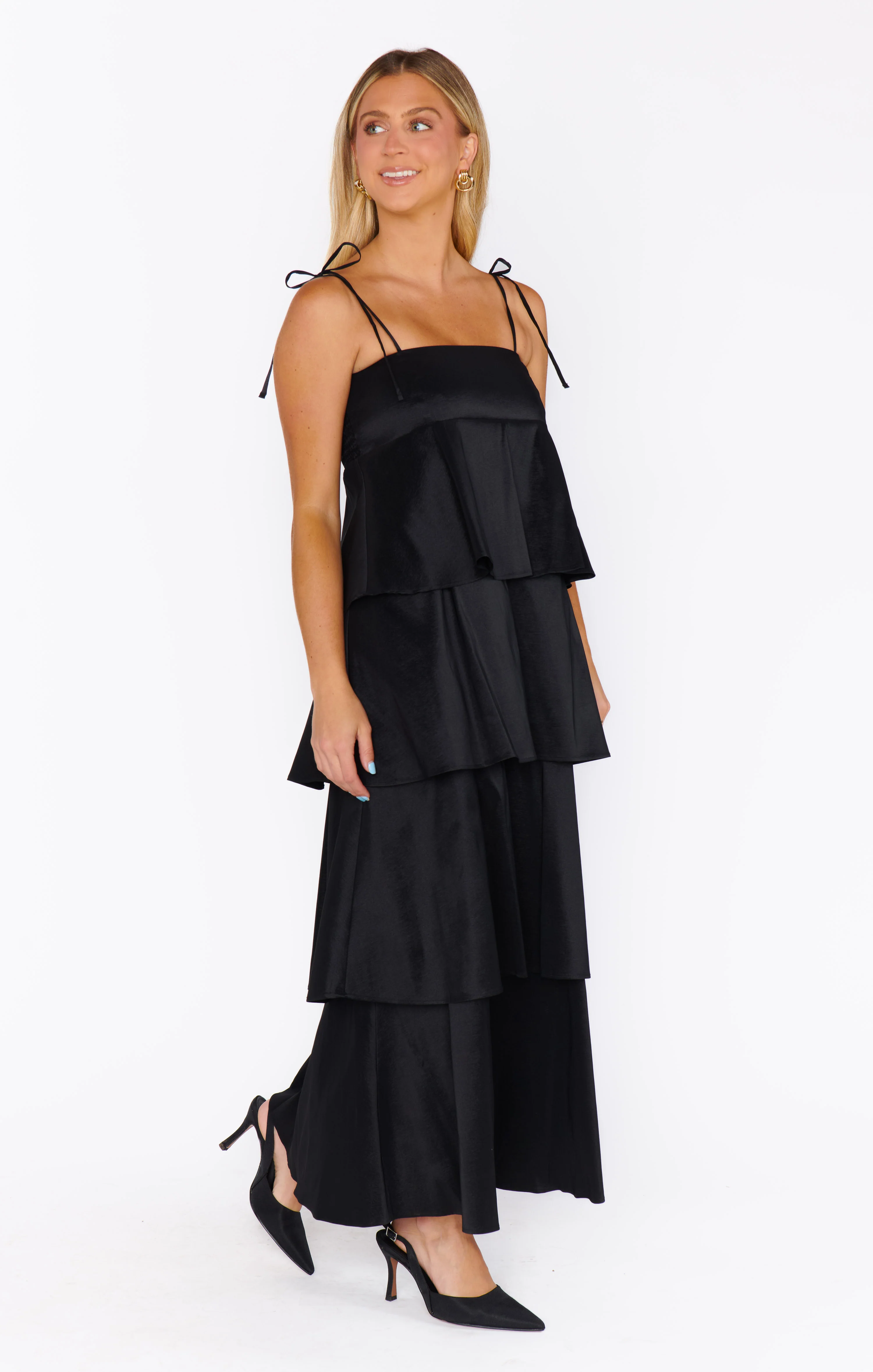 Hazel Halter Maxi Dress ~ Black Luxe Satin