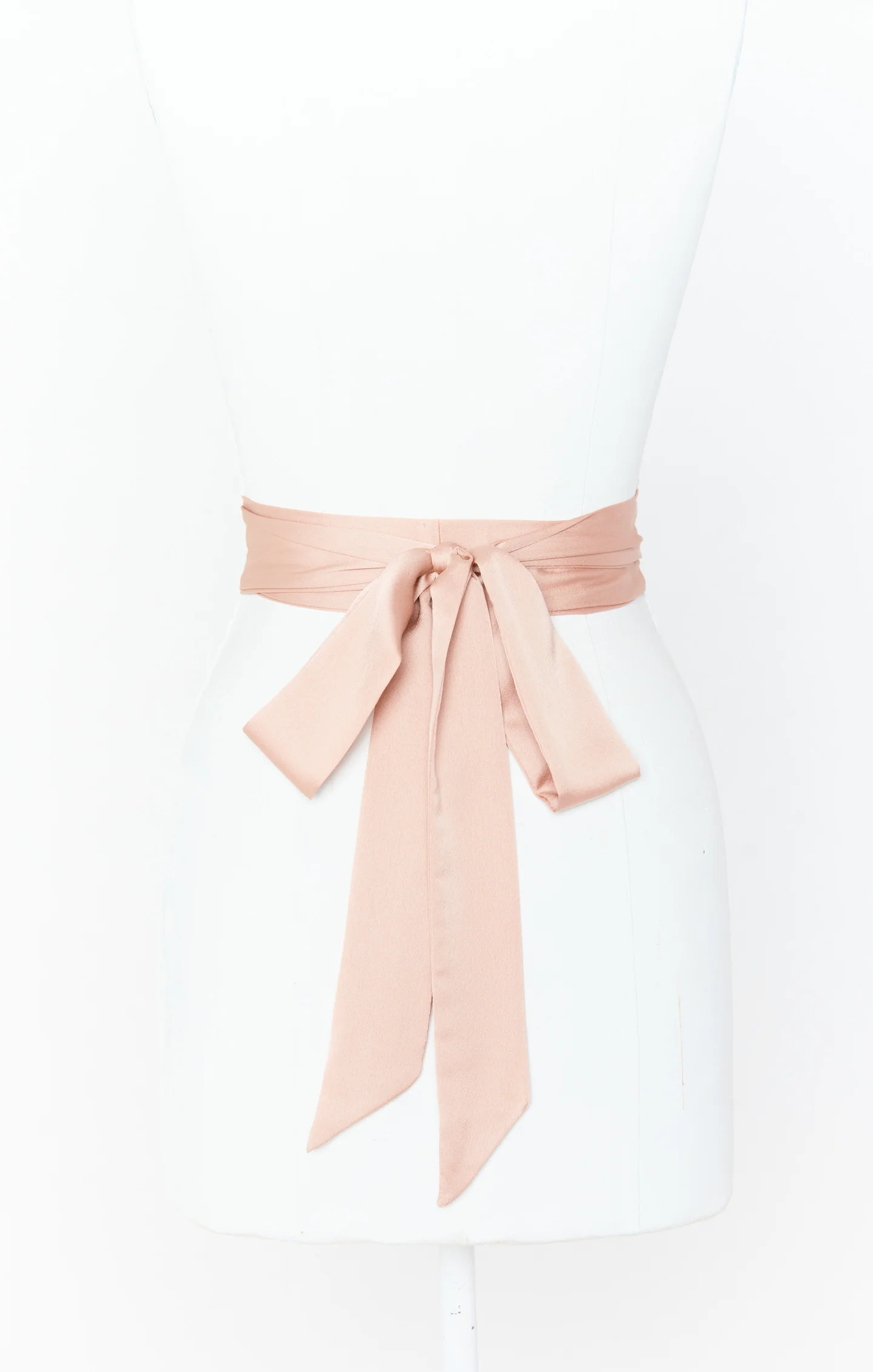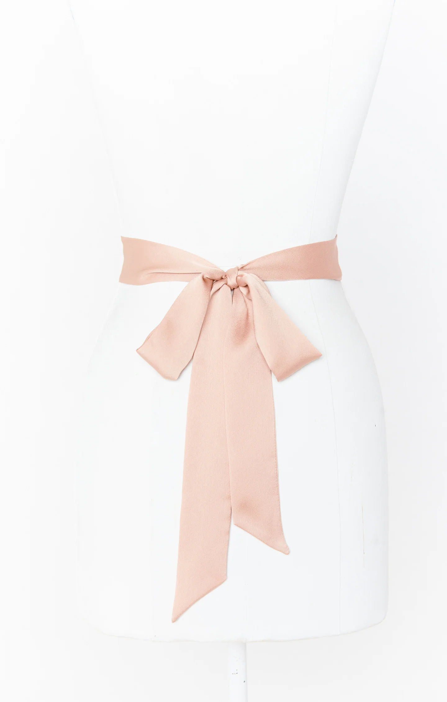 DetailA luxurious bridesmaid sash in rose gold and satin, perfect for adding elegance to your dresses. Available in two lengths: regular (for tying a bow) and long (to wrap around twice or extend into the plus collection).