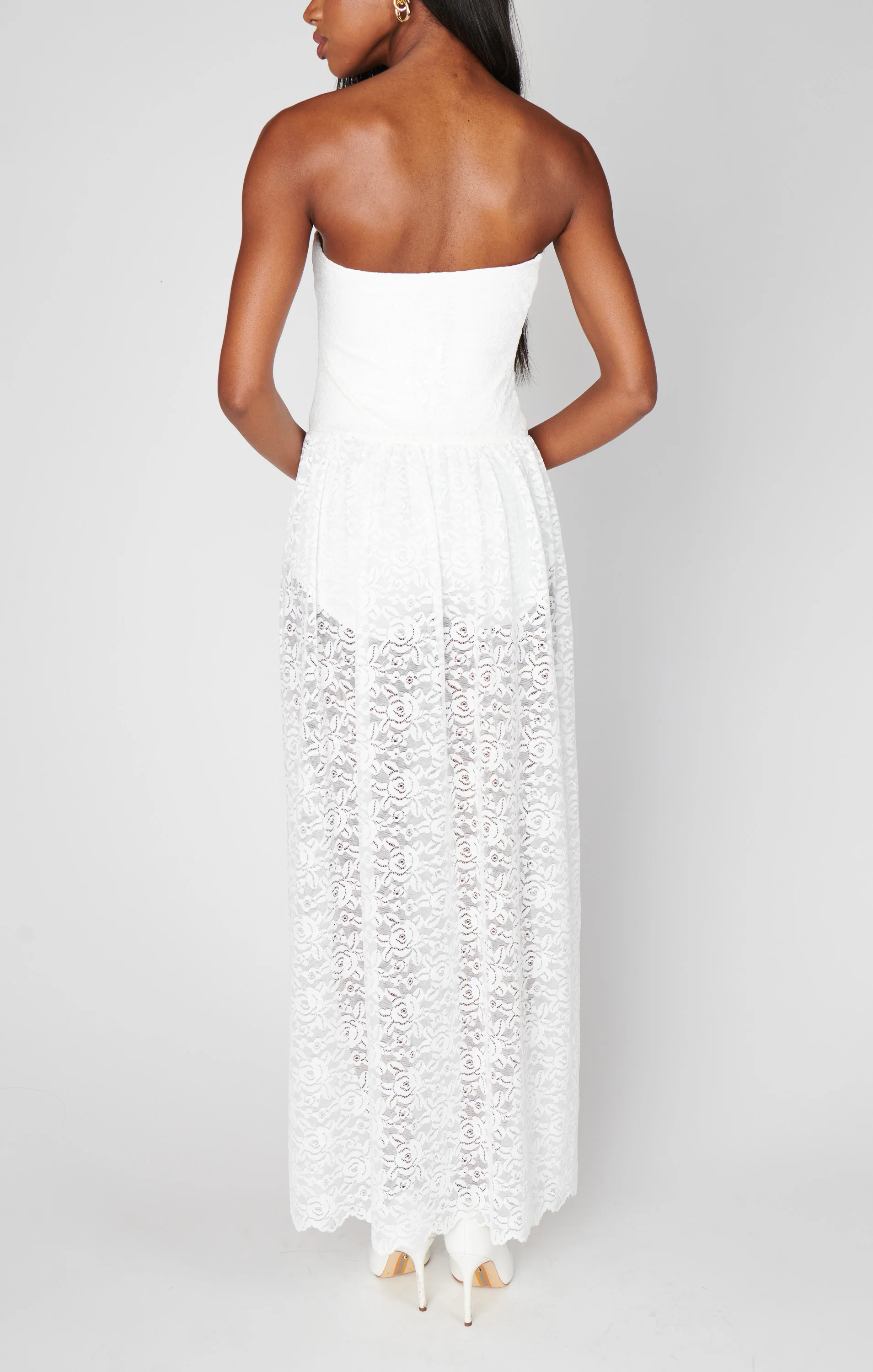 A flirty and sophisticated dress with a sheer lace neckline and a sleek straight drop waist, perfect for adding a touch of elegance to your outfit. The built-in shorts lining keeps you covered while you dance the night away.