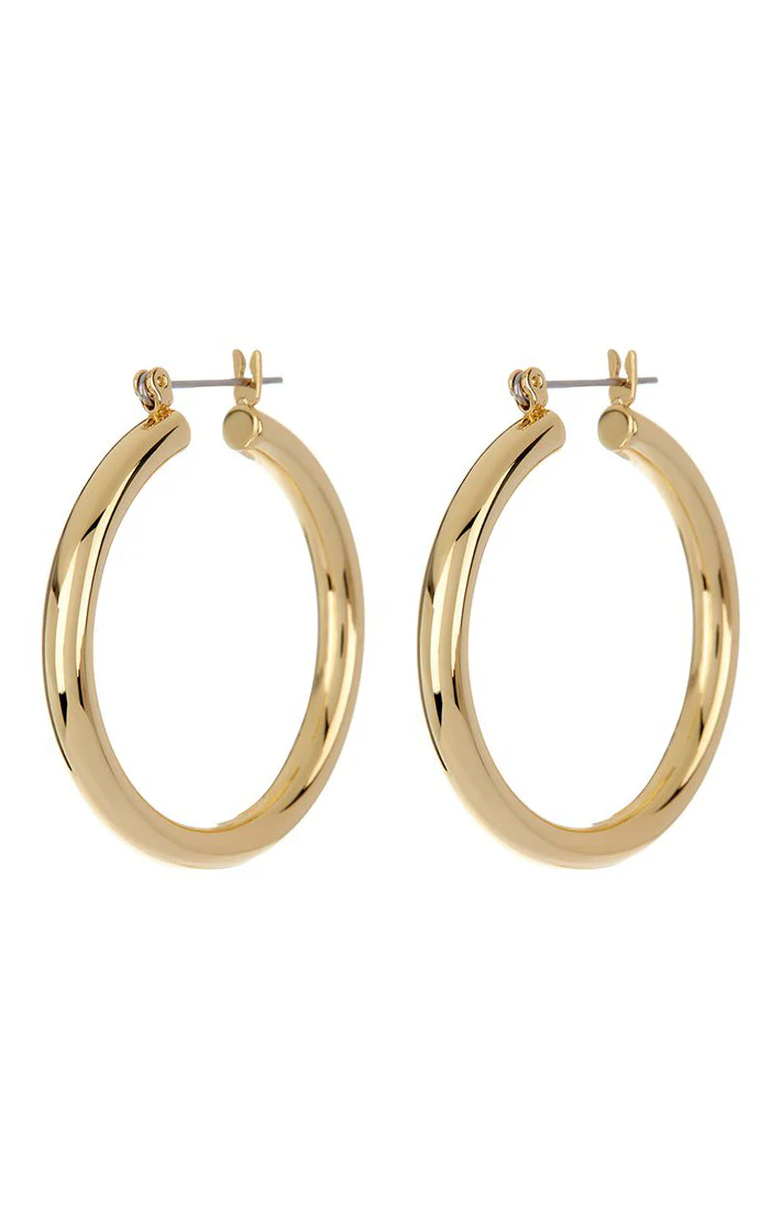 DetailA mid-sized hoop with a gold finish, suitable for both casual and athletic use.