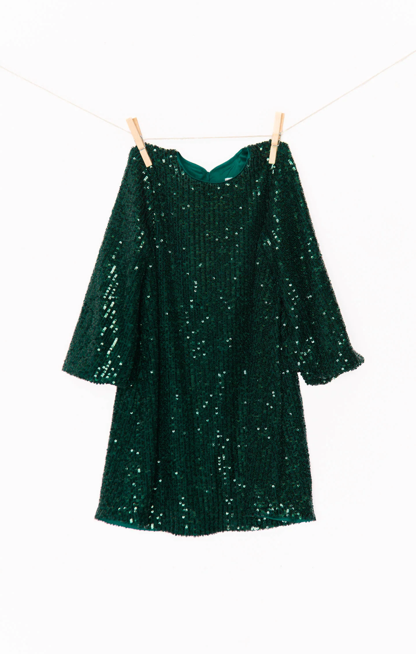 DetailA sequined dress for a little girlie, featuring shimmering emeralds and extra twirly design. Perfect for a showstopper.
