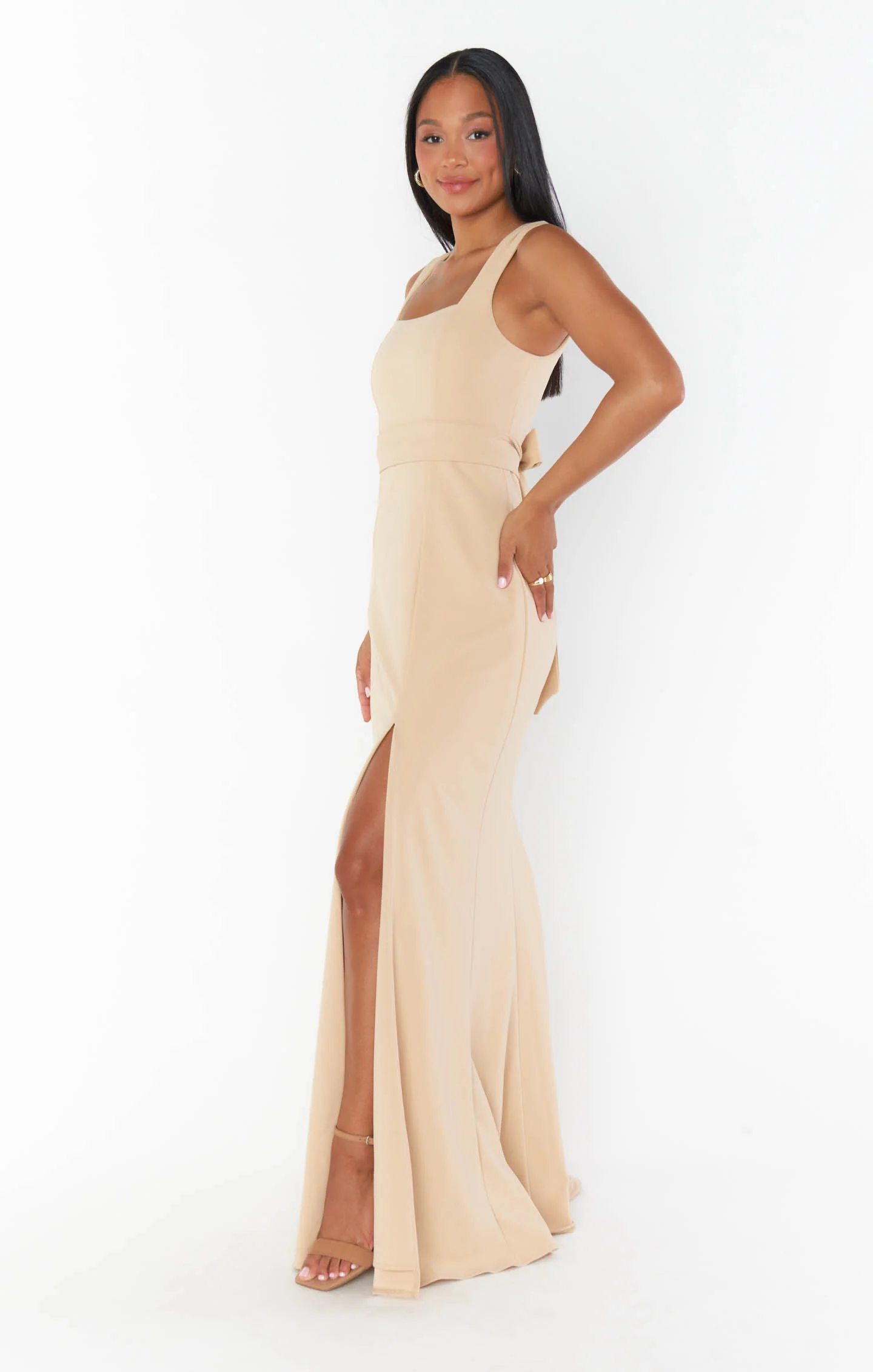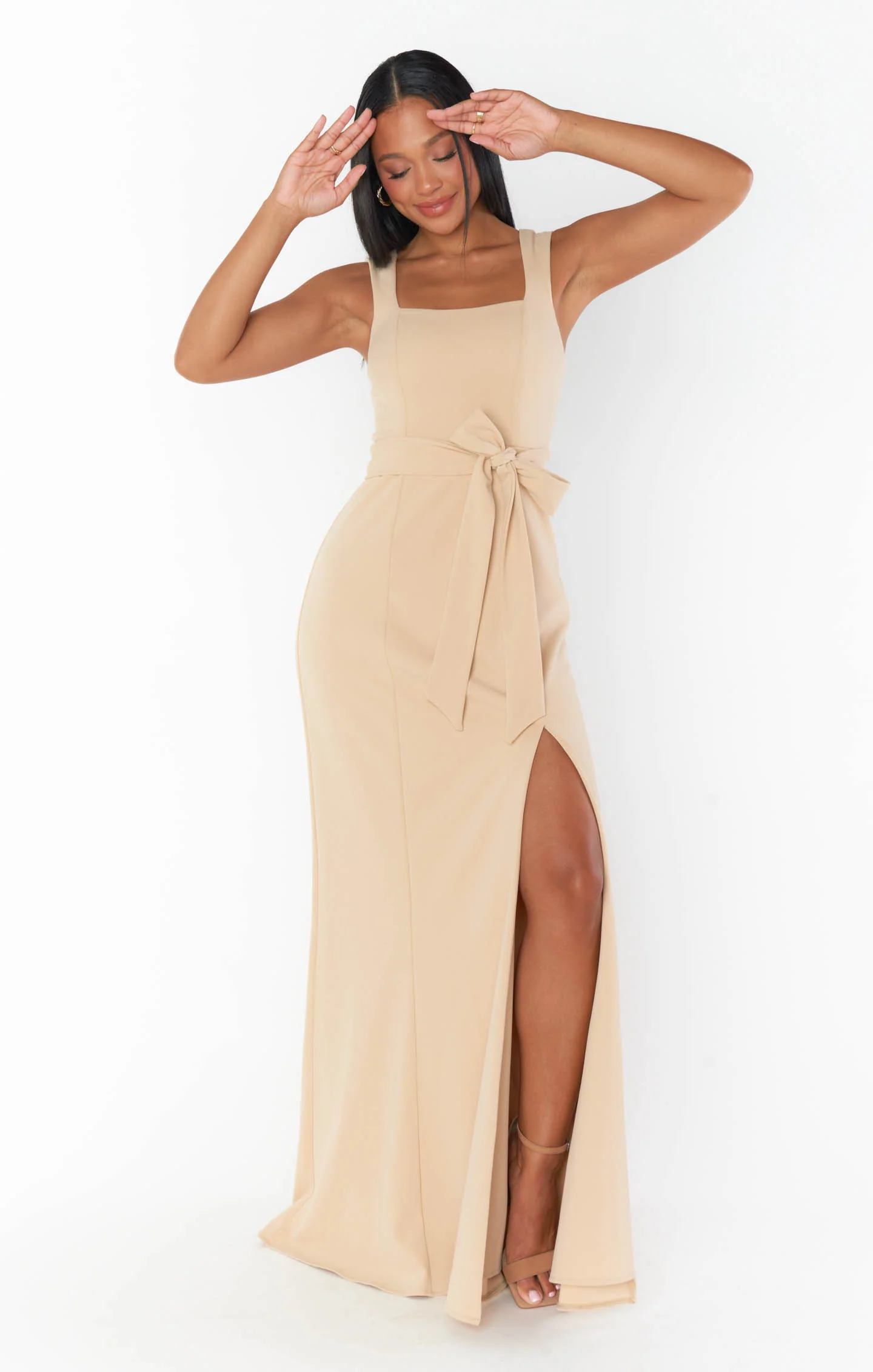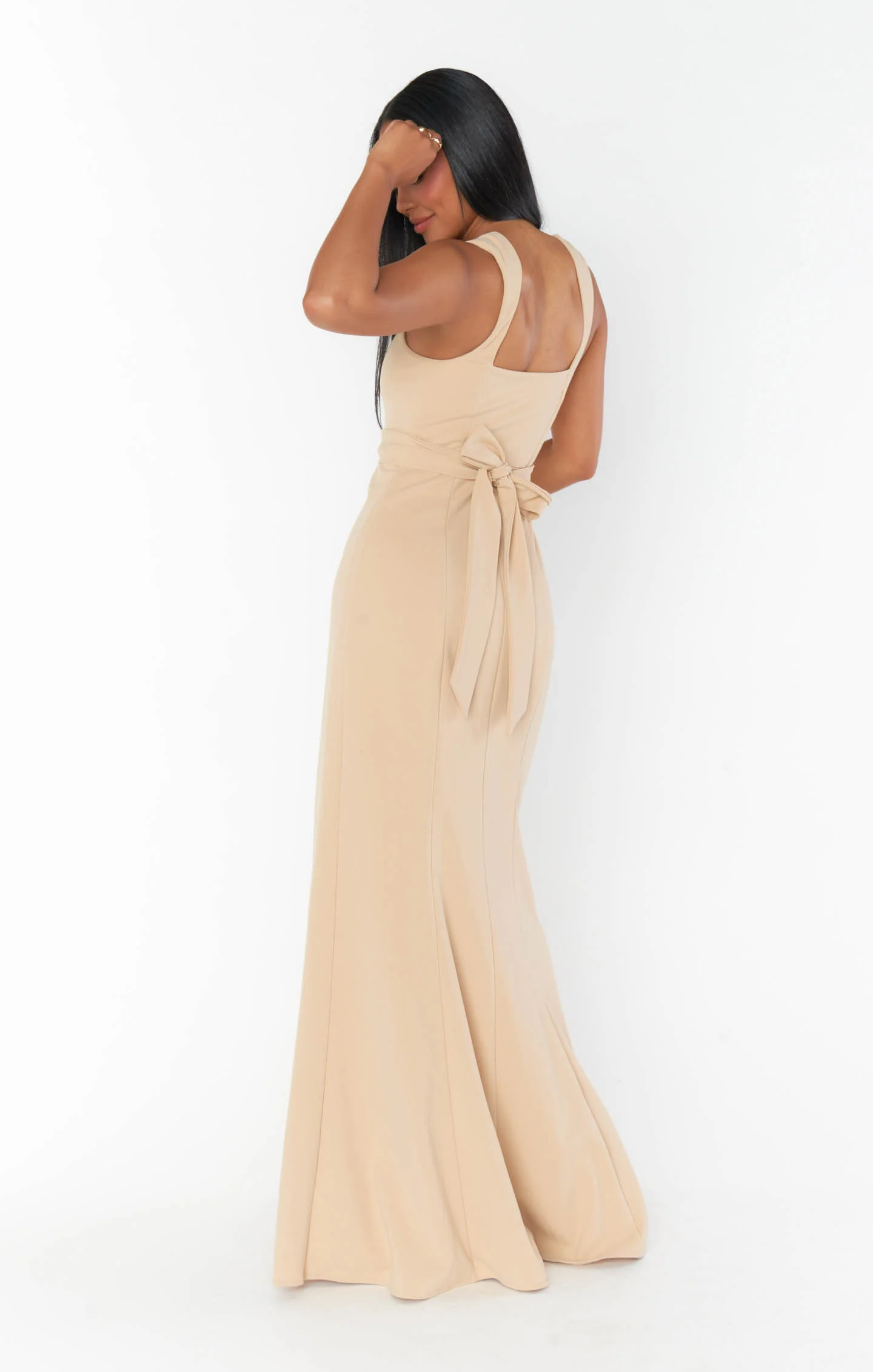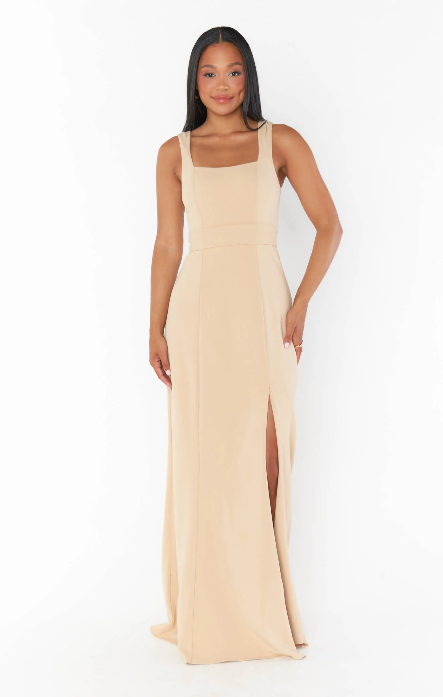 DetailA formal maxi dress with a side slit for a subtle leg pop. Thicker straps and a square neck provide ultra-fitting comfort, while the super stretchy fabric ensures comfort throughout. Comes with a detachable sash, making it a chic choice for modern bridesmaids and a versatile option for special events.