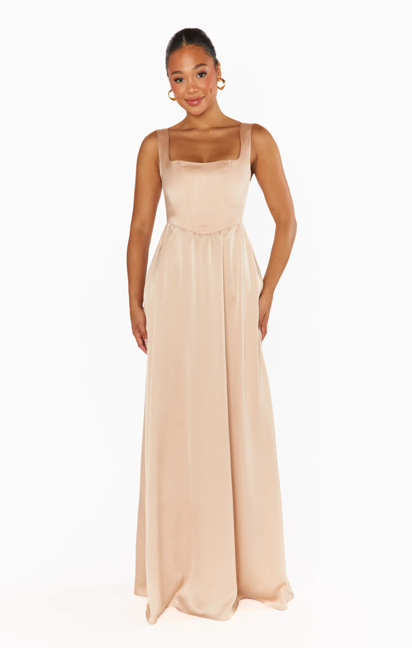 Clarissa Corset Dress ~ Rose Gold Luxe Satin