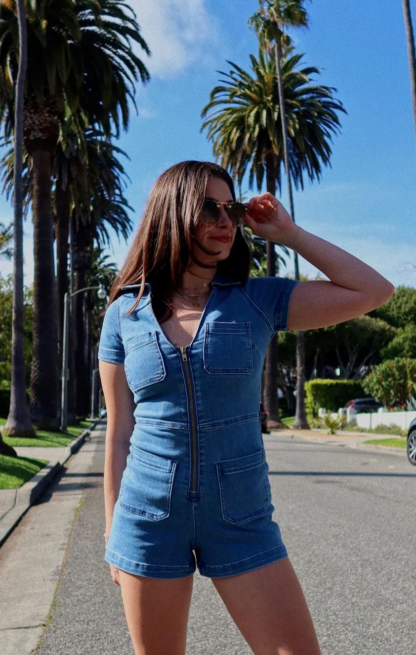 A denim-inspired cowboy boots with a zippered front for varying skin exposure, a collared top, and embroidered pockets. Perfect for a rugged, casual look.