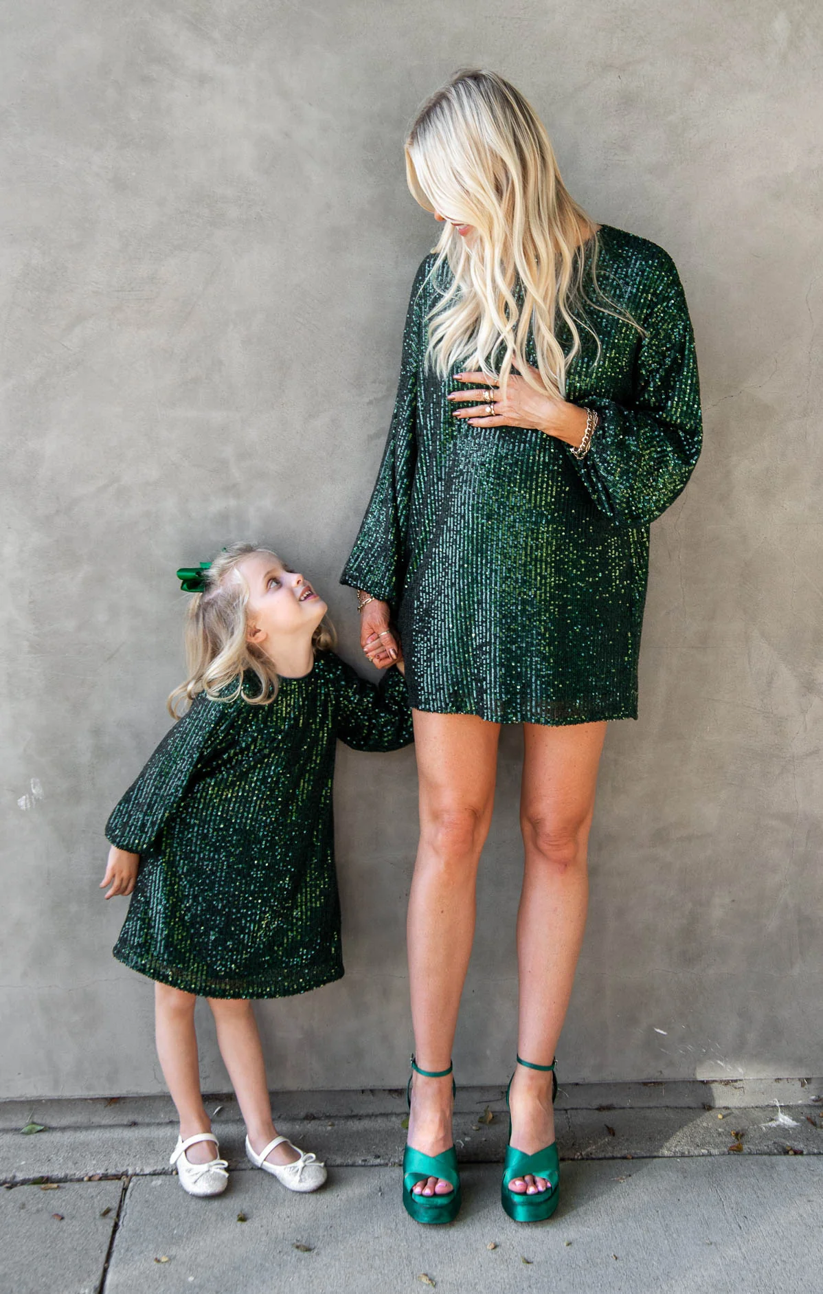 A short, sassy mini dress with drop shoulders and pockets. Perfect for any occasion. The dress features a classic scoop neck and simple draped design. Pair it with a belt to create shape or wear it as is to add style and shine all night long.
