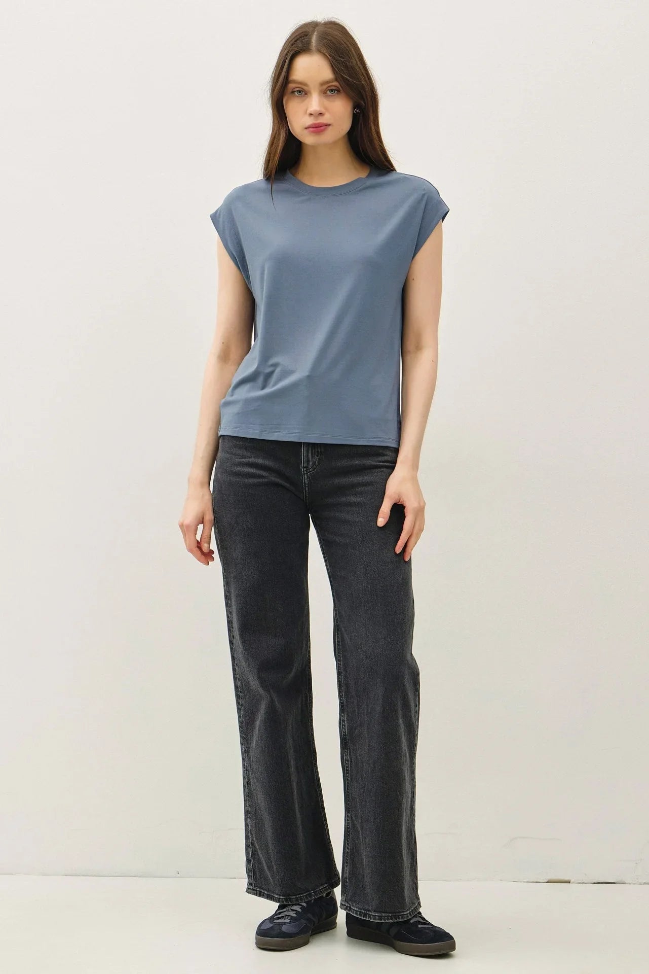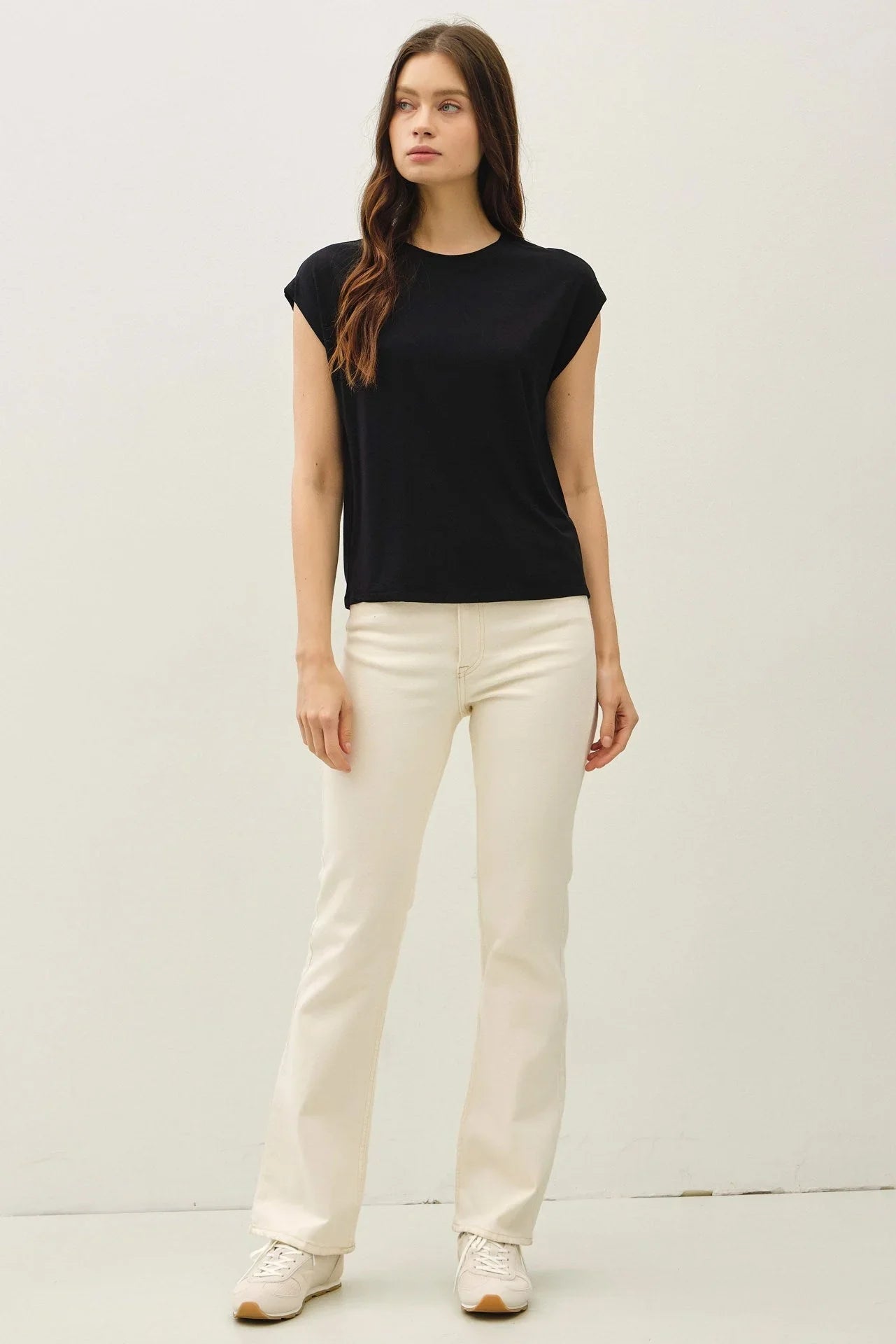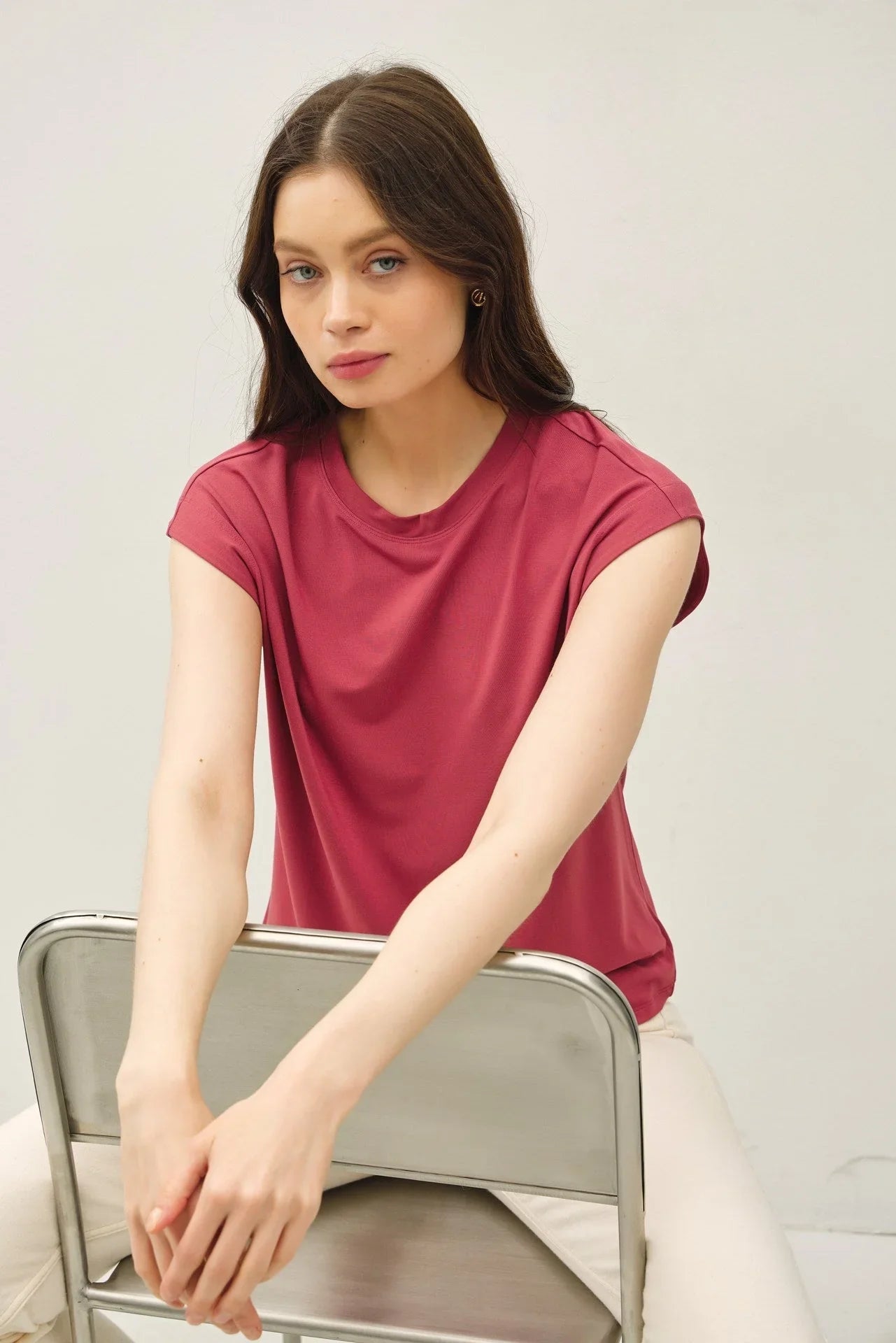 Featuring a classic round neck and flattering cap sleeves, this versatile top is perfect for layering or wearing solo. The breathable fabric ensures maximum comfort, while the solid color options make it easy to mix and match with your favorite outfits. Whether you're heading to work, running errands, or lounging at home, this top is your go-to for effortless style.
