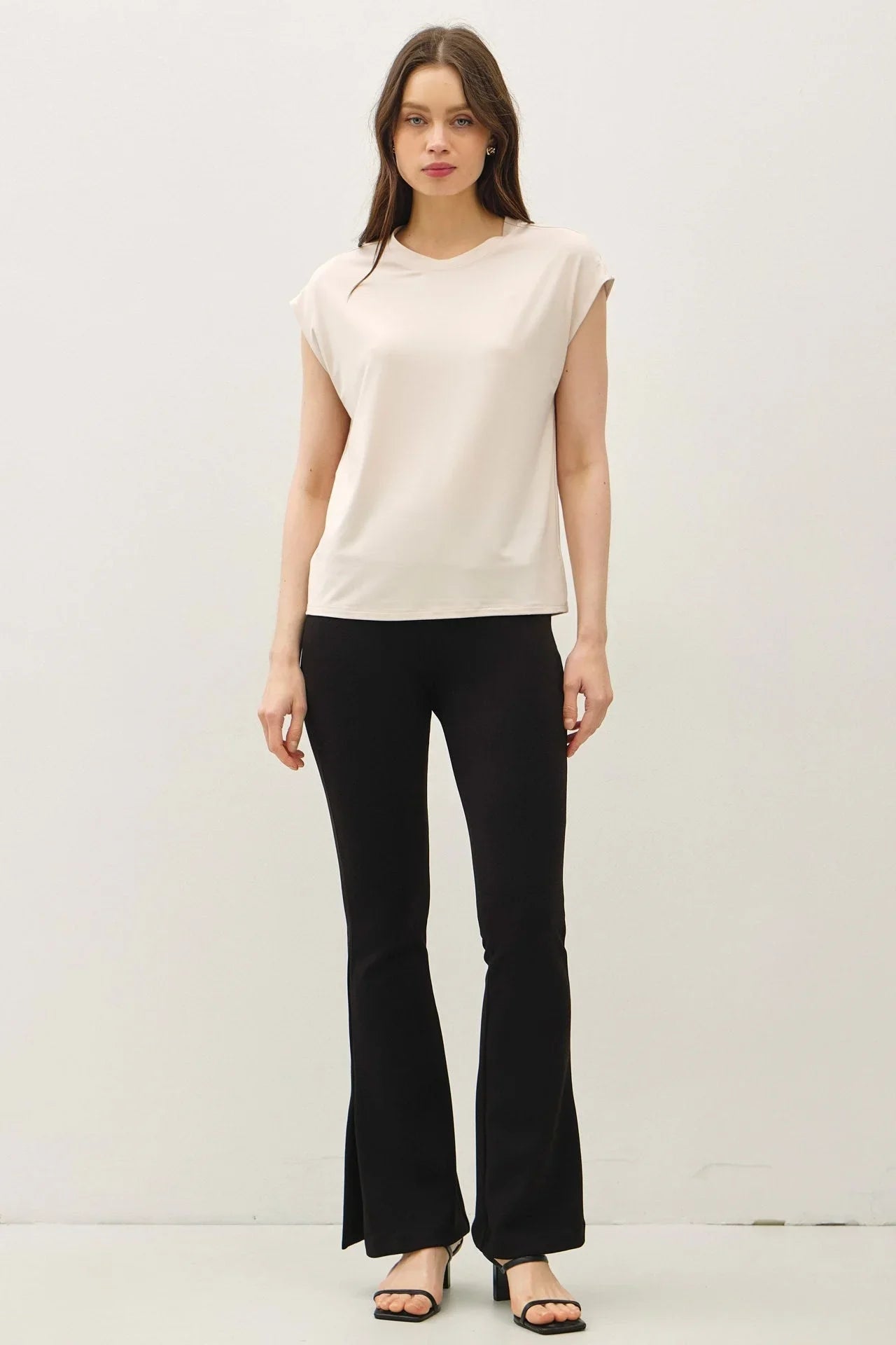 Bamboo Cap Sleeve Basic Round Neck Top