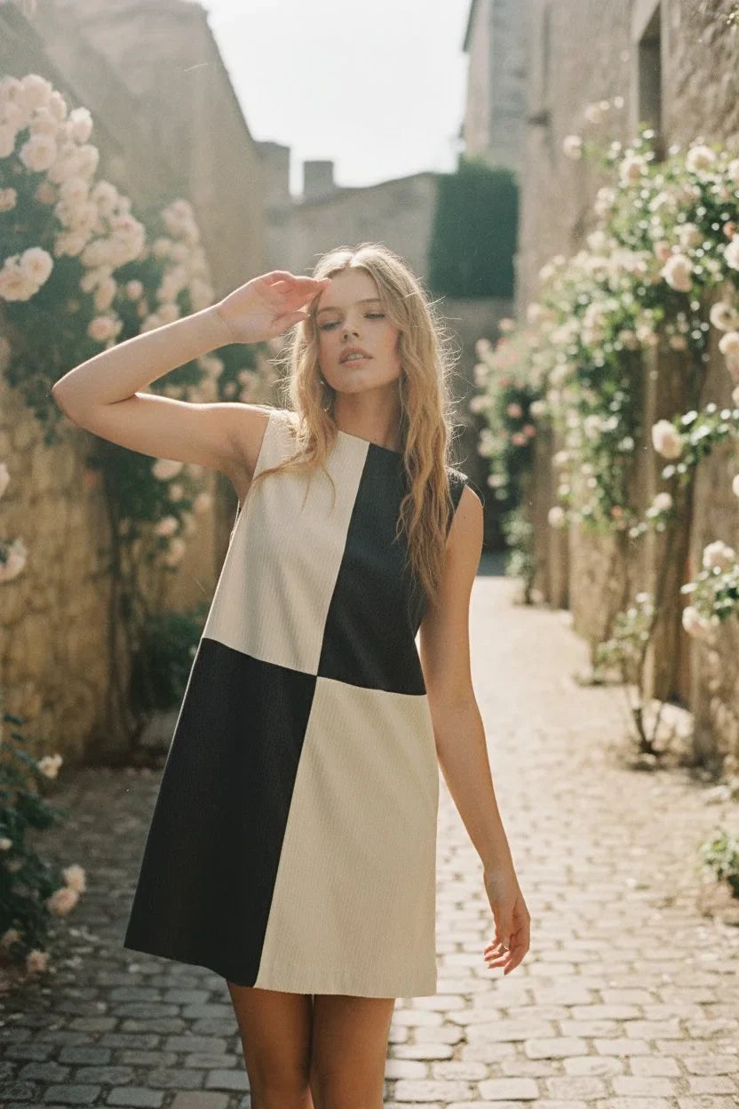 Turn heads and elevate your style with the Corduroy Color Block Mini Dress. This chic and playful dress combines the timeless charm of corduroy with a bold, modern color-block design that exudes confidence and creativity.