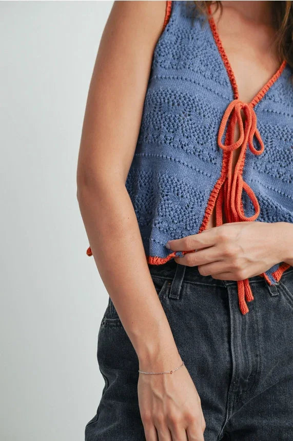 Add the Crochet Tie Front Top to your collection today and embrace the perfect blend of elegance and ease!