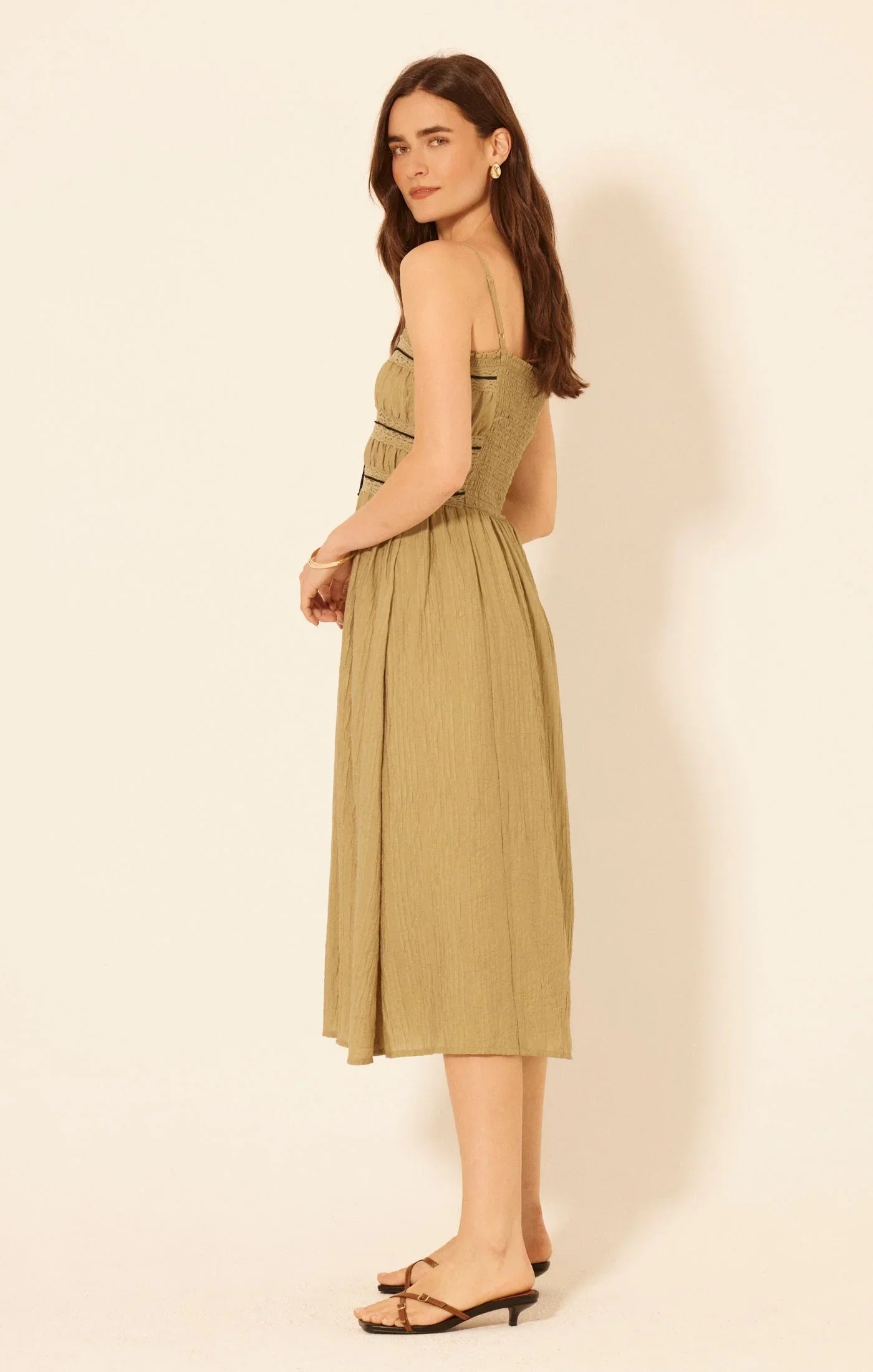 EMMA SLEEVELESS SMOCKED MIDI DRESS