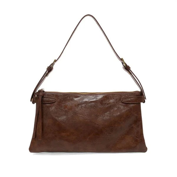 Ramp up your fashion game with the ultra-stylish Eve. This sleek style features a modern shape and comes in a variety of colors in distressed vegan leather. Keep everything organized with three inner compartments and one exterior zip pocket. Sling it over your shoulder and the Eve shoulder bag will instantly turn you into a fashionista!