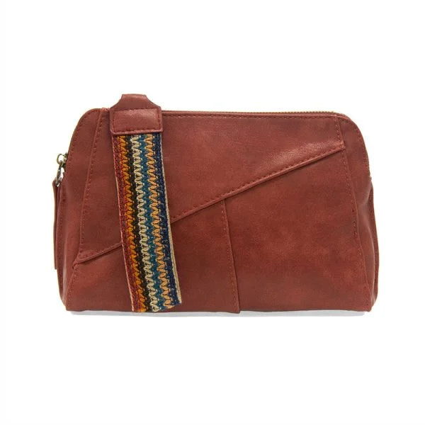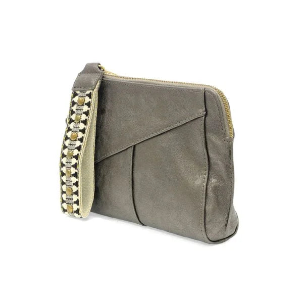 Retro styling crafted in antiqued vegan leather give this clutch a vintage vibe. The removable woven wrist strap is the finishing touch on this stylish bag so you can wear as a wristlet, a clutch or even a crossbody with the included removable shoulder strap.