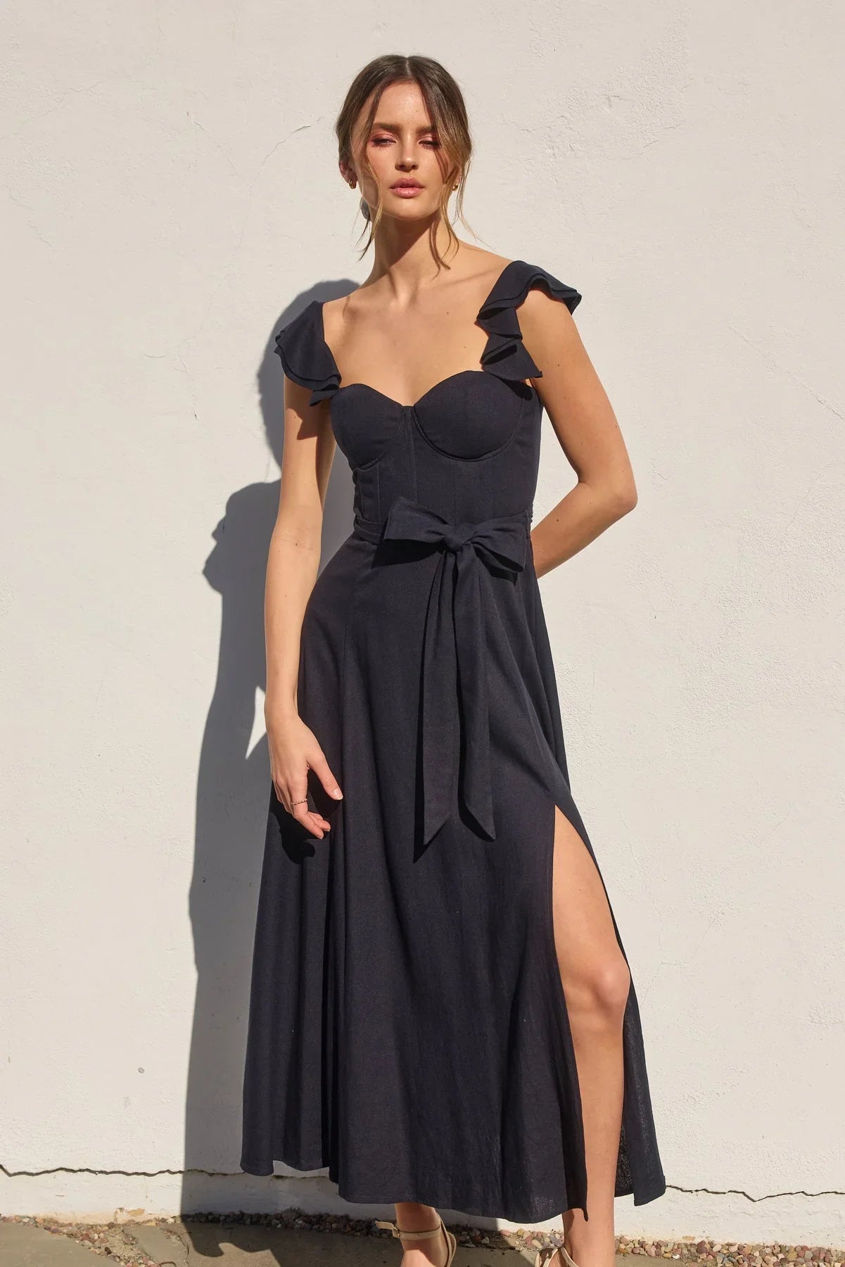 Step into elegance with the Heaven Sent Corset Flutter Dress—a stunning blend of sophistication and comfort. Crafted from a premium Cotton-Linen blend, this maxi dress is the perfect harmony of breathable fabric and refined design, making it ideal for any occasion where you want to feel effortlessly chic.