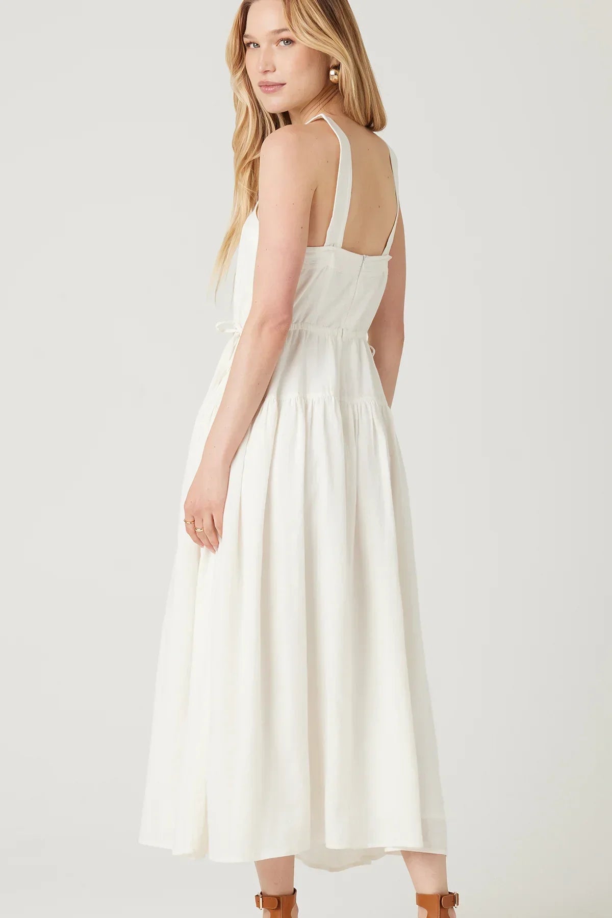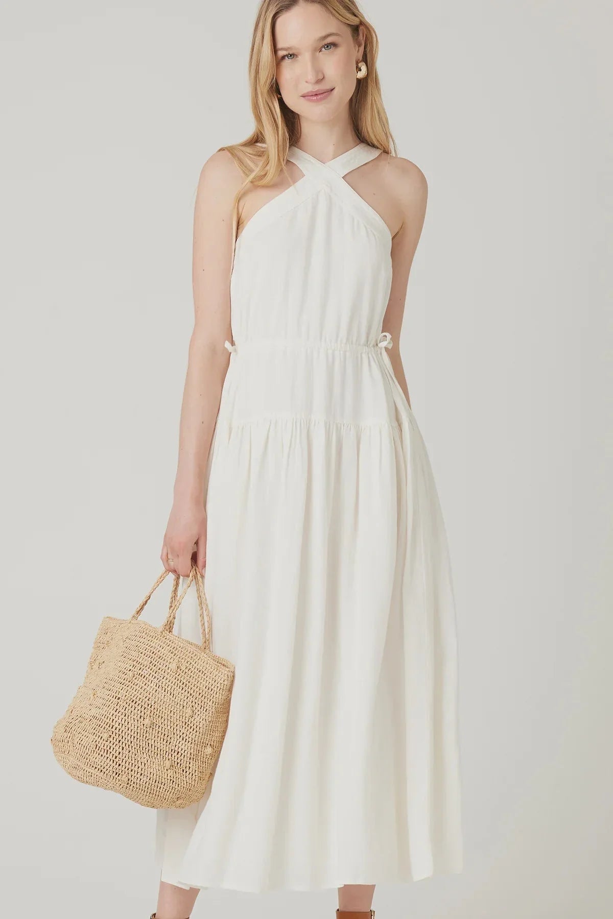 The Lisbon Dress is the perfect addition to any wardrobe. With its high neck and tie side design, this maxi dress offers both style and versatility. Made from eco-friendly materials, it's sure to be a long-lasting staple in your collection.