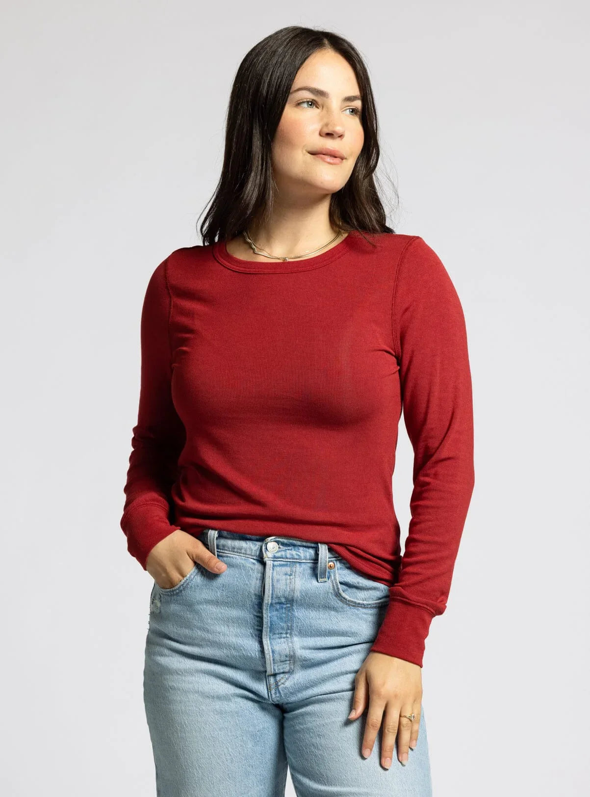 Elevate your wardrobe essentials with the Long Sleeve Basic Stacy Top from Thread and supply. Designed for effortless style and everyday comfort, this long-sleeved top features a relaxed silhouette and a classic crew neckline, making it a versatile staple for any outfit.
