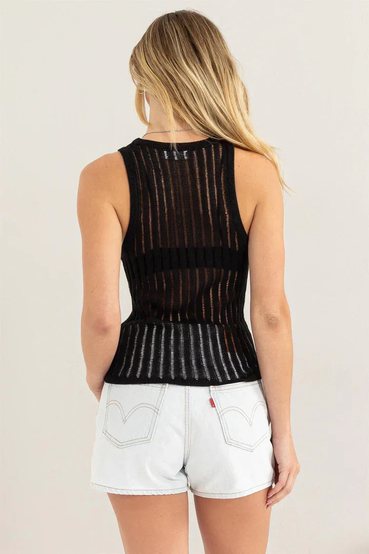 With this piece, we're always ready to look cute for the day. This tank top is featured with an open knit construction for everlasting style, crafted with a round neck and slim-fit that flatters your curves. Pair with cargo pants.