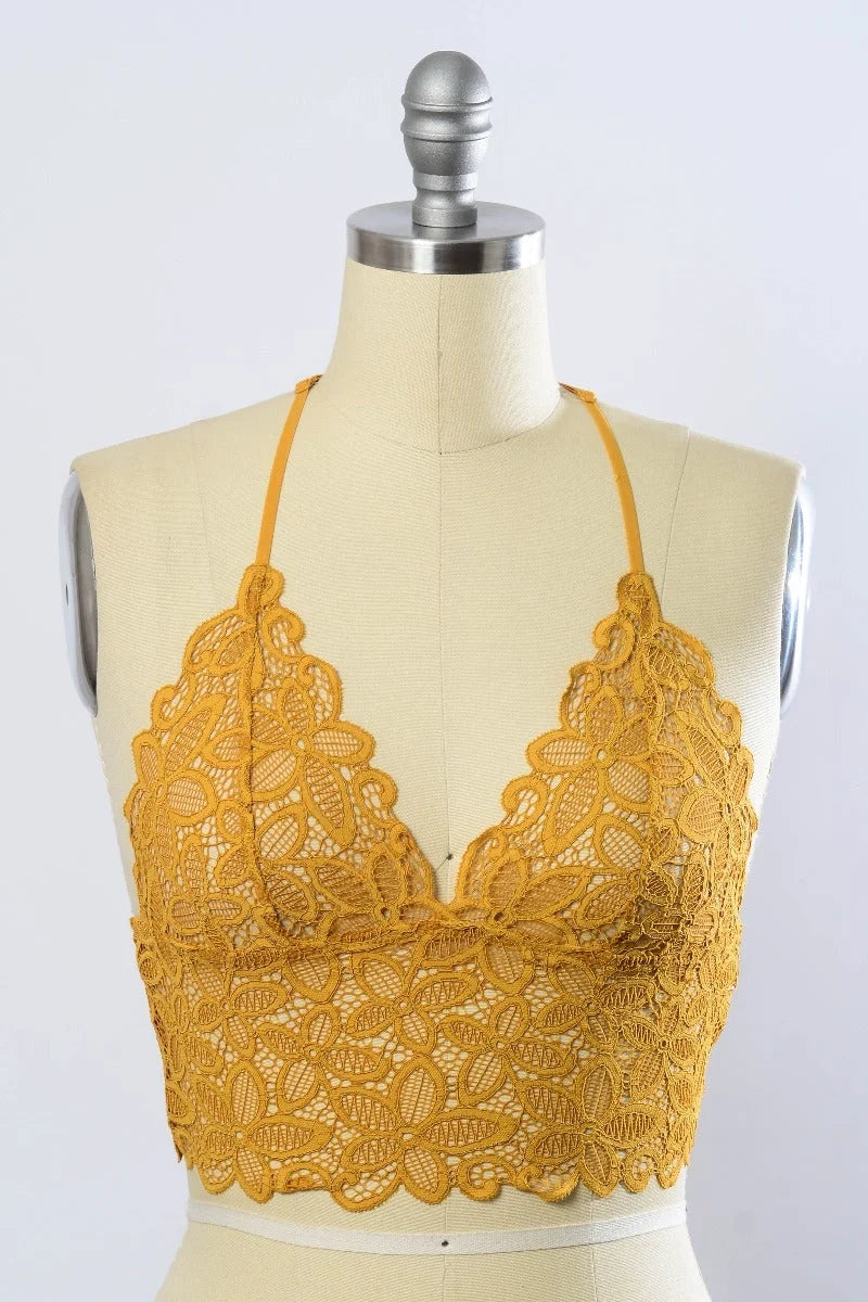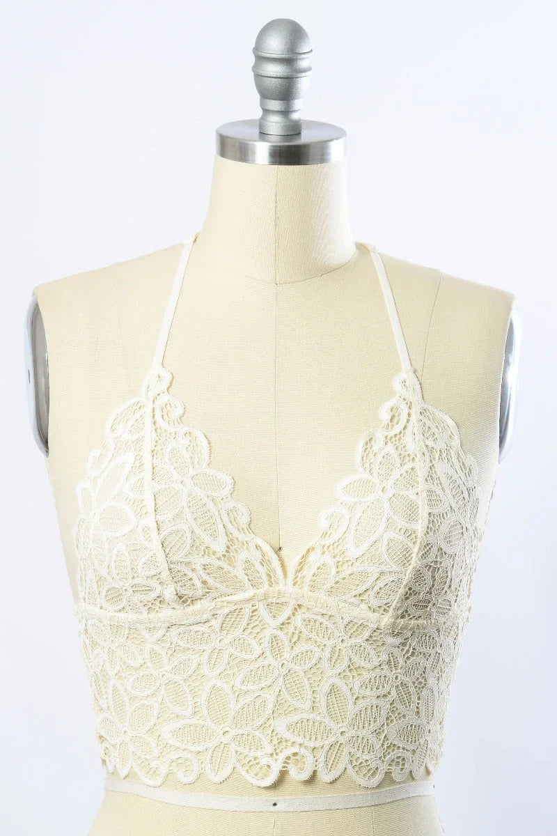 This racerback flower lace bralette combines comfort and style. The padded top provides support and coverage while showcasing a bohemian aesthetic. Delicate floral lace and a racerback design create a chic, major free spirit look. Perfect for everyday wear or as a cute layering piece.