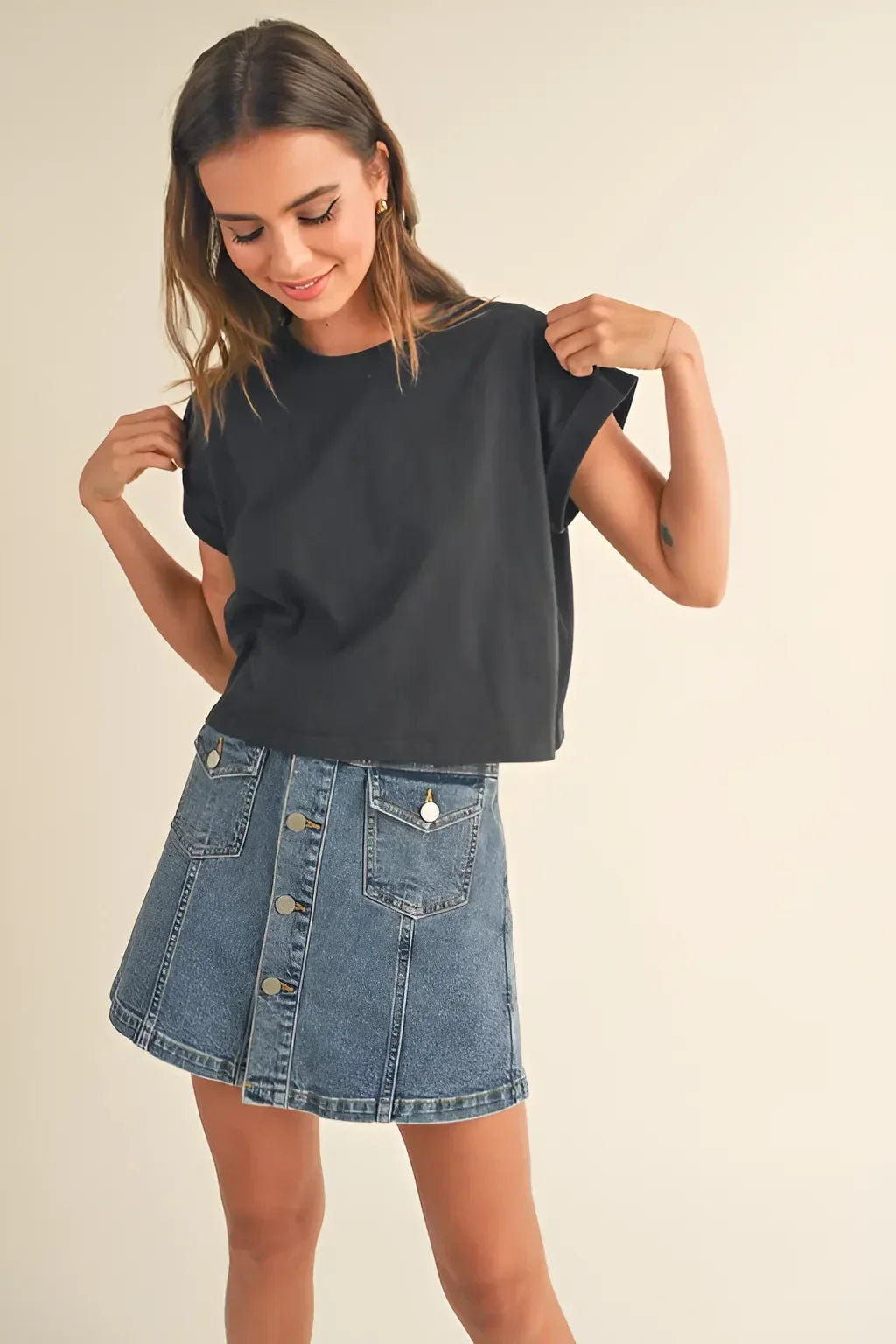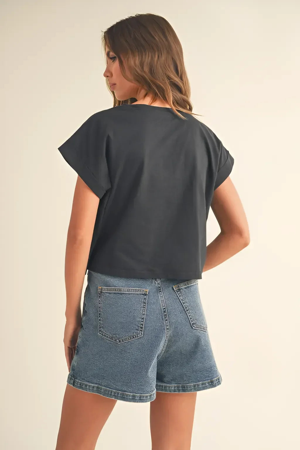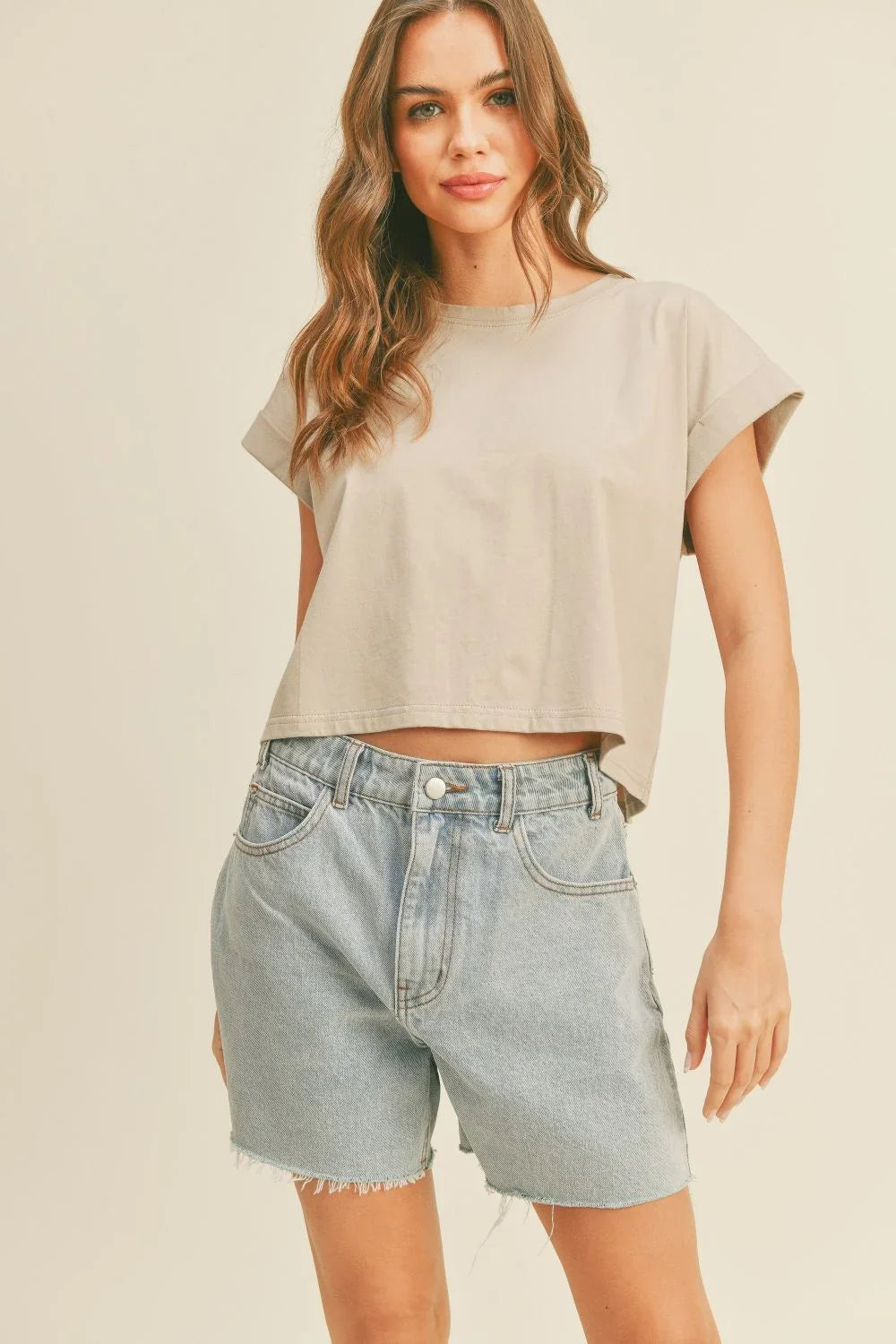 Elevate your everyday style with the effortless charm of our Round Neck Cuffed Sleeve Top. Designed with a flowy box cut, this lightweight and breathable top is your go-to for all-day comfort and versatility.