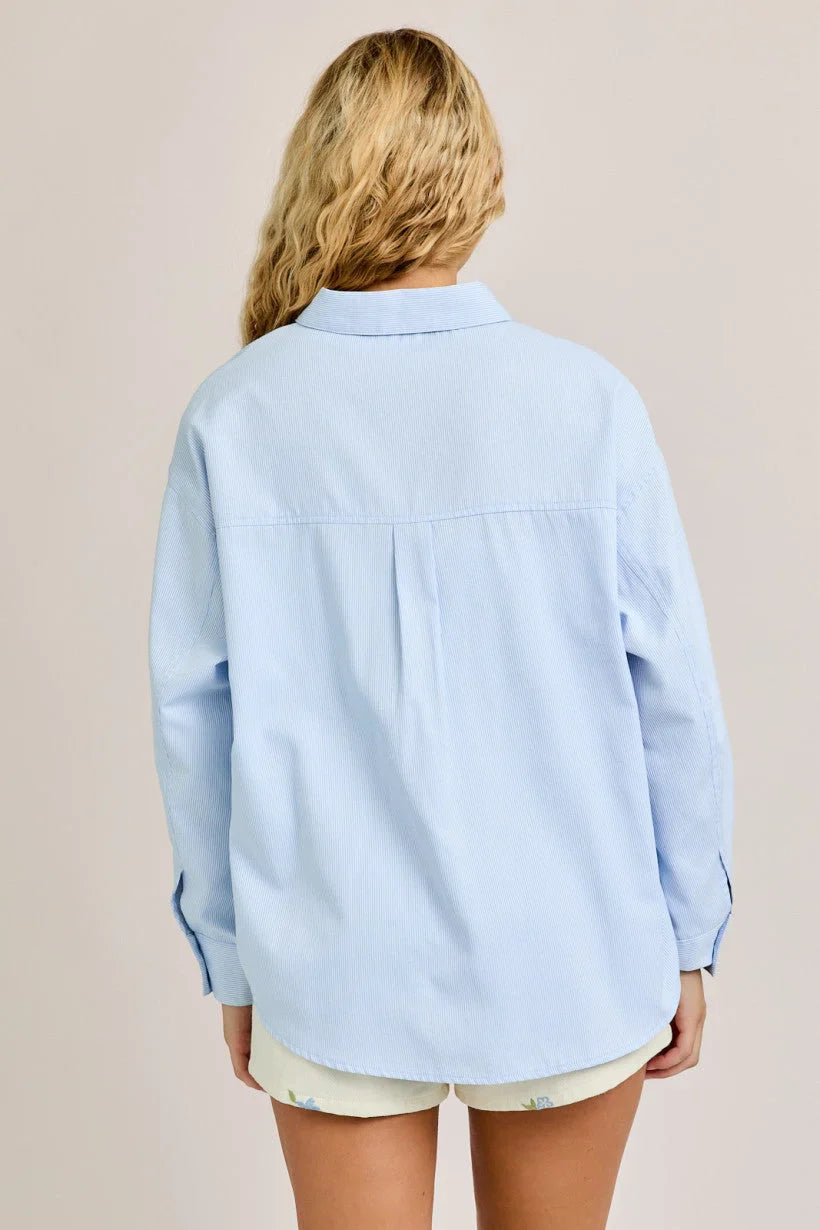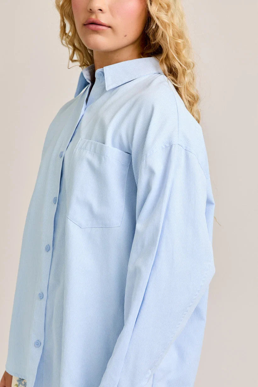 This striped oversized shirt offers a perfect blend of style and comfort. Crafted from a 50% cotton and 50% polyester fabric, it provides a relaxed fit suitable for various body types. The boho-inspired design features eye-catching stripes, making it a versatile addition to any wardrobe.