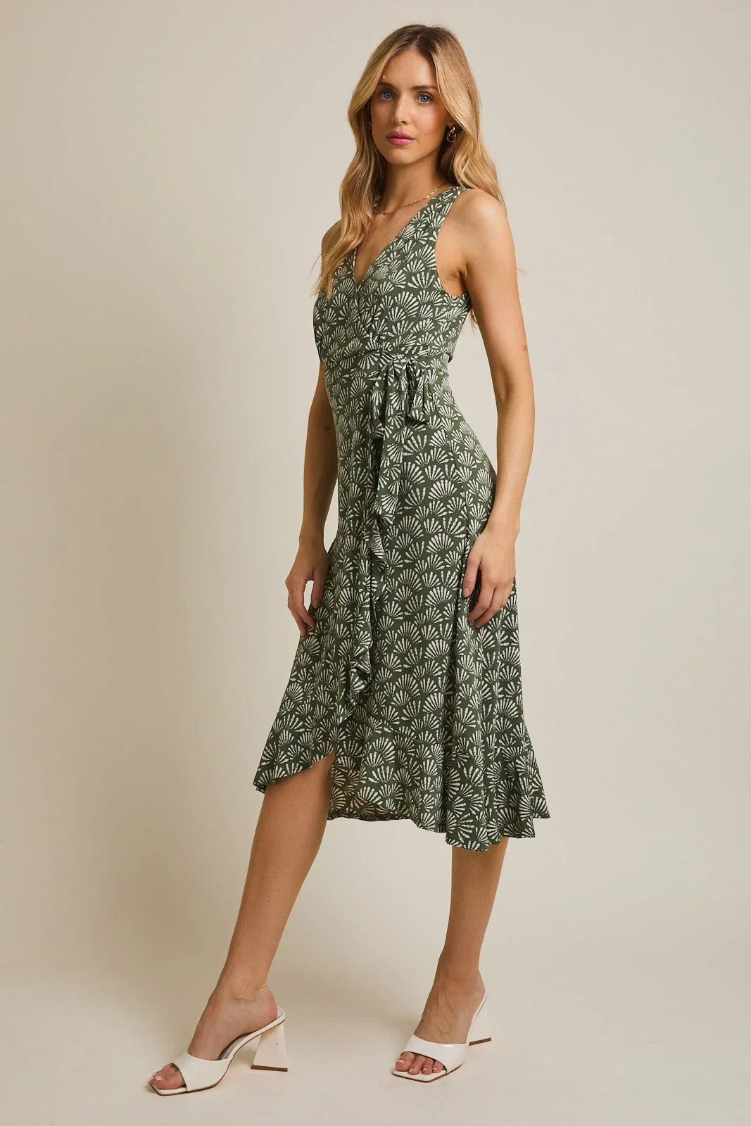 V Neck Waist Tie Sleeveless Midi Dress